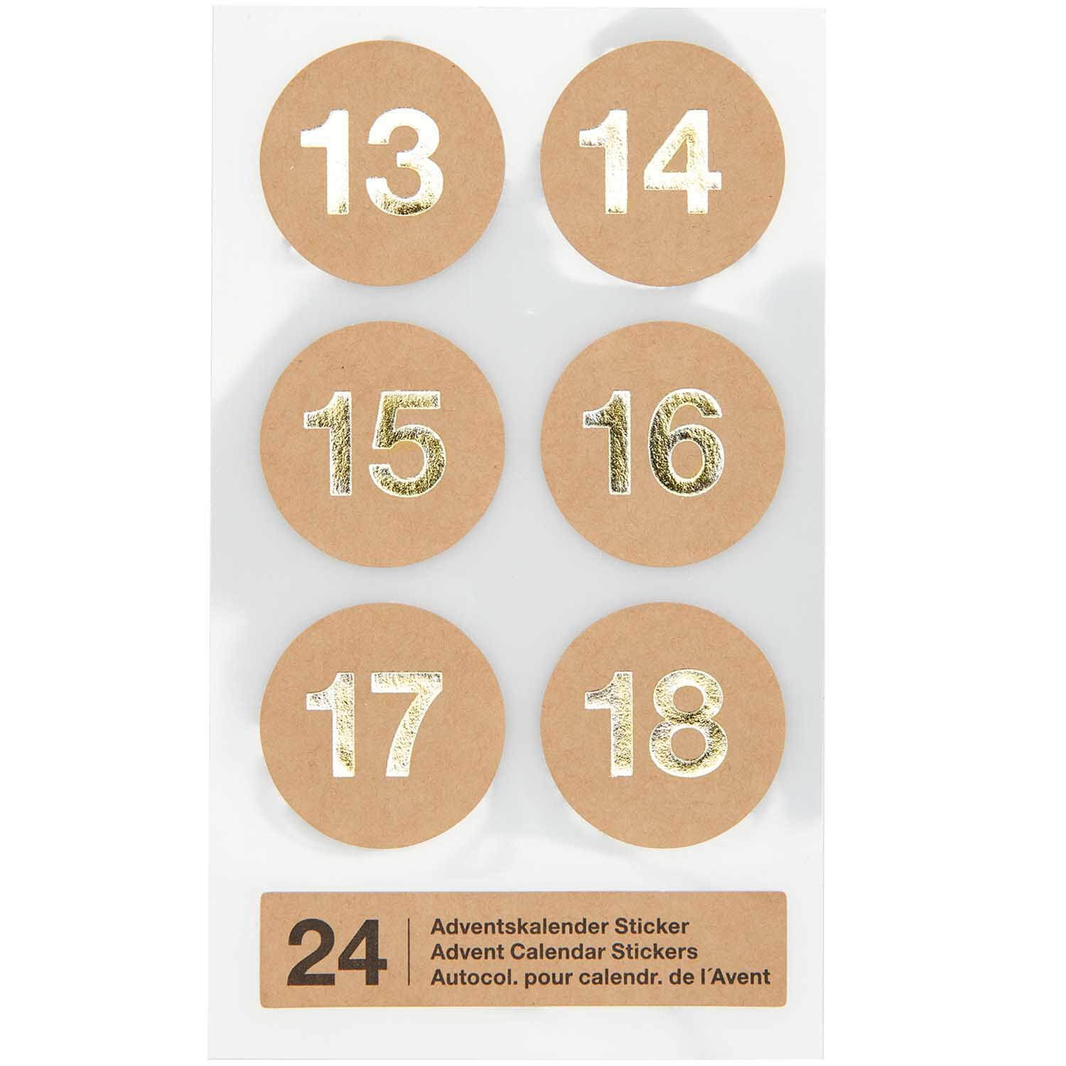 Für die festliche und individuelle Note des selbstgebastelten Adventskalender - die selbstklebenden Zahlensticker. Jede Zahl von 1 bis 24 ist auf den Stickern abgebildet, sodass eine Verwechslung der Türchen ganz sicher ausgeschlossen ist.
