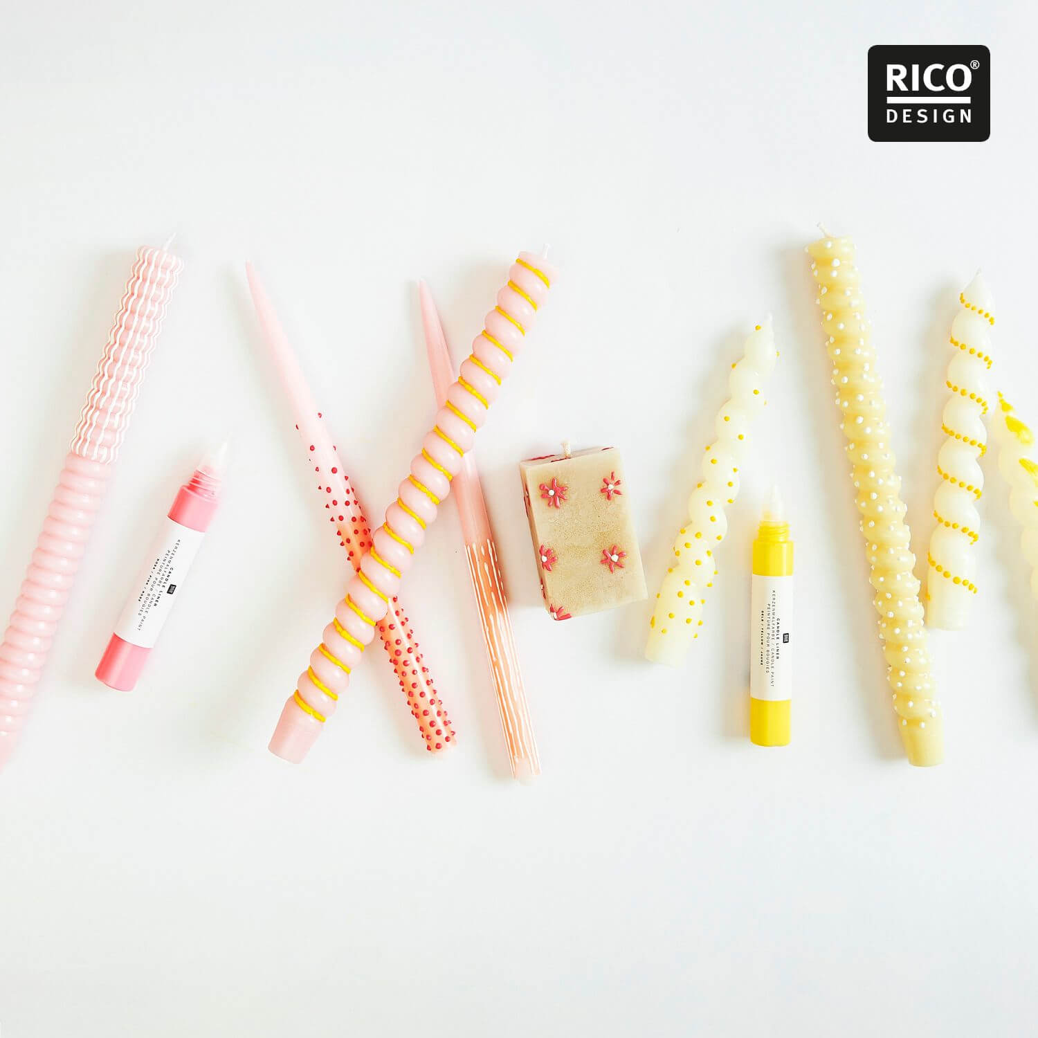 Mit den Candle Liner Kerzenmalfarben lässt sich jeder Kerze im Handumdrehen eine ganz persönliche und kreative Note verleihen. Die speziellen Malstifte enthalten eine weiche Wachsmischung, die sich ideal zum direkten Auftragen auf Kerzen eignet. Die feine Spitze der Stifte ermöglicht präzises Arbeiten, sodass sowohl einfache Muster als auch kunstvolle Verzierungen gelingen. Egal ob verspielte Punkte, elegante Linien oder kreative Schriftzüge – mit etwas Übung werden schlichte Kerzen im Nu zu liebevoll gestalteten Unikaten.