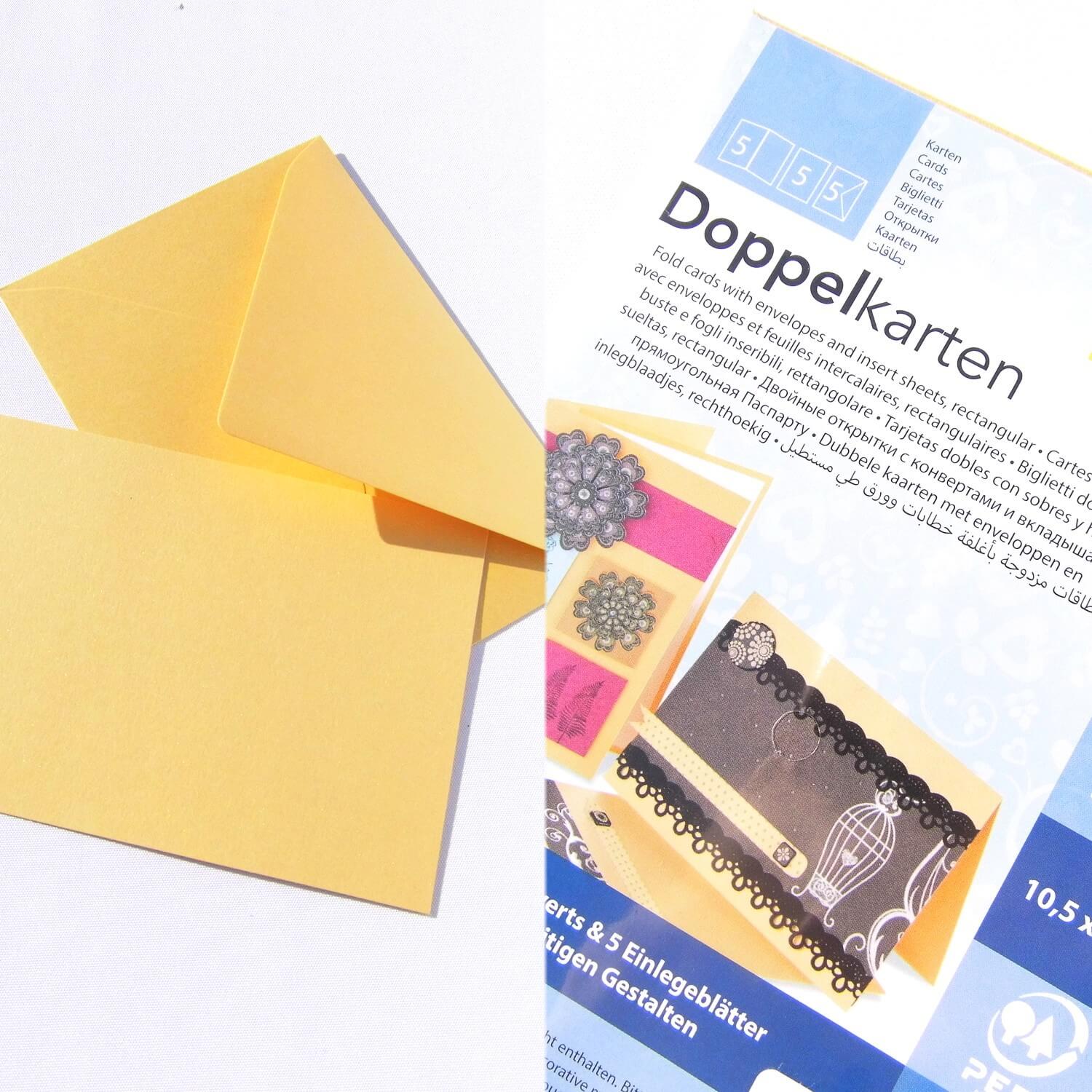 Zu diesem Set gehören je 5 Kuverts, Doppelkarten und Einleger. Alles in goldfarben. Das sind die perfekten Blankokarten für die Gestaltung von Einladungen zur Goldenen Hochzeit.