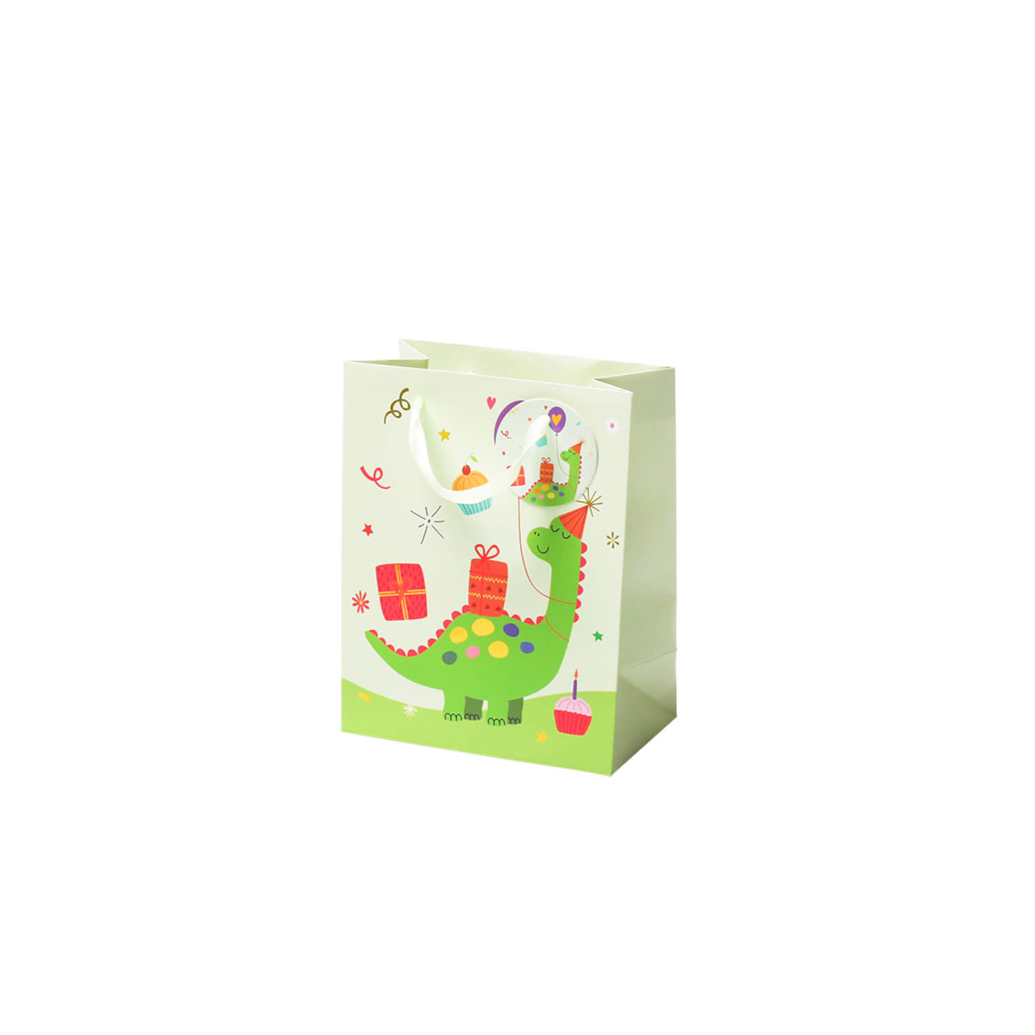 Diese fröhliche Dino-Geschenktasche bringt Kinderaugen zum Leuchten und ist die perfekte Verpackung für kleine und große Überraschungen – besonders zum Kindergeburtstag. Die liebevoll gestaltete Tasche ist mit einem freundlichen Dinosaurier-Motiv bedruckt, das inmitten eines kunterbunten Geburtstagsszenarios steht. Umgeben von Girlanden, kleinen Geschenken, Törtchen, Muffins und Konfetti, verbreitet das Design sofort gute Laune und Vorfreude aufs Auspacken. Erhältlich ist die Dino-Geschenktasche in zwei praktischen Größen.
