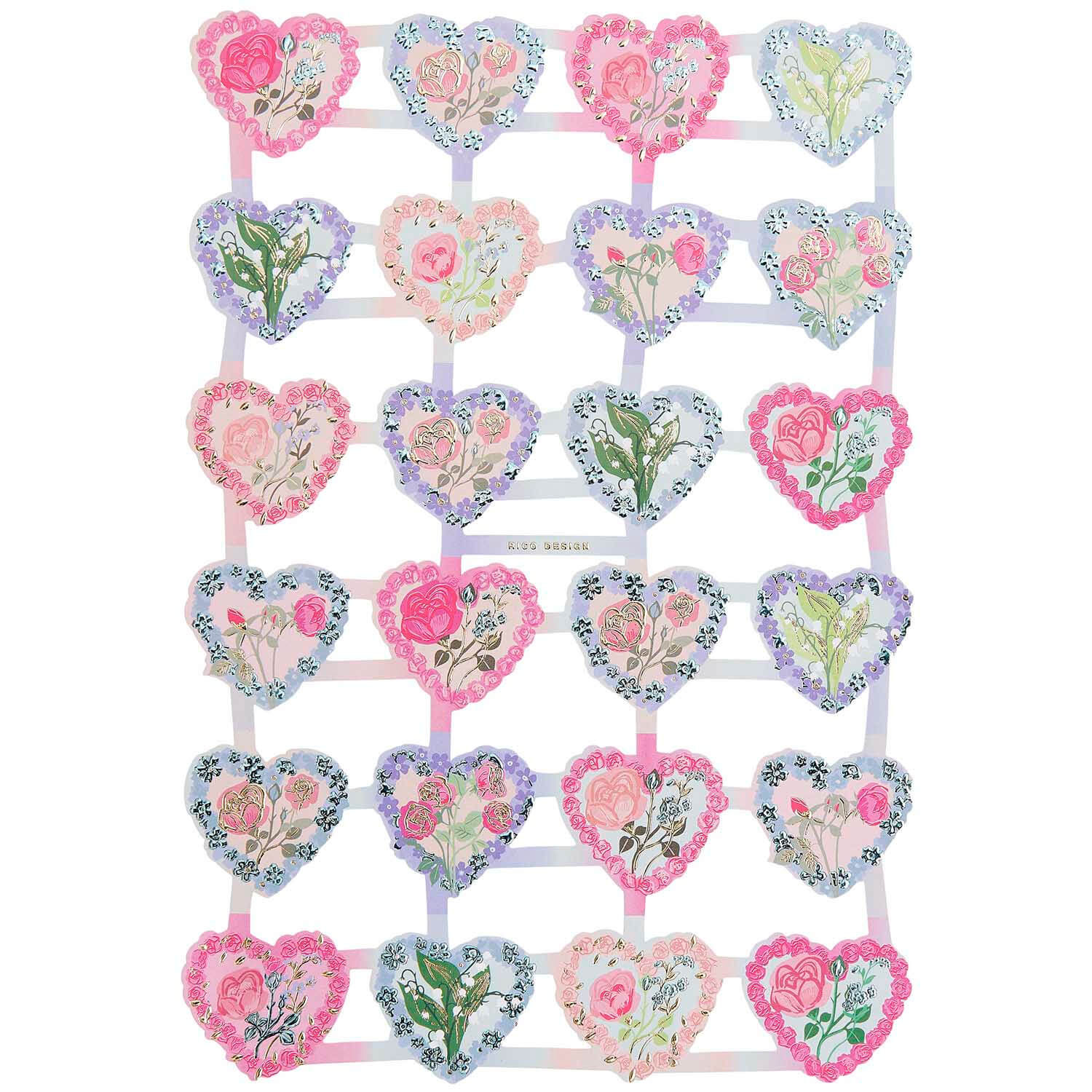 Motiv: Wunderschöne Herzen in strahlendem Glanz, verziert mit zarten Rosen und verspielten Maiglöckchen
