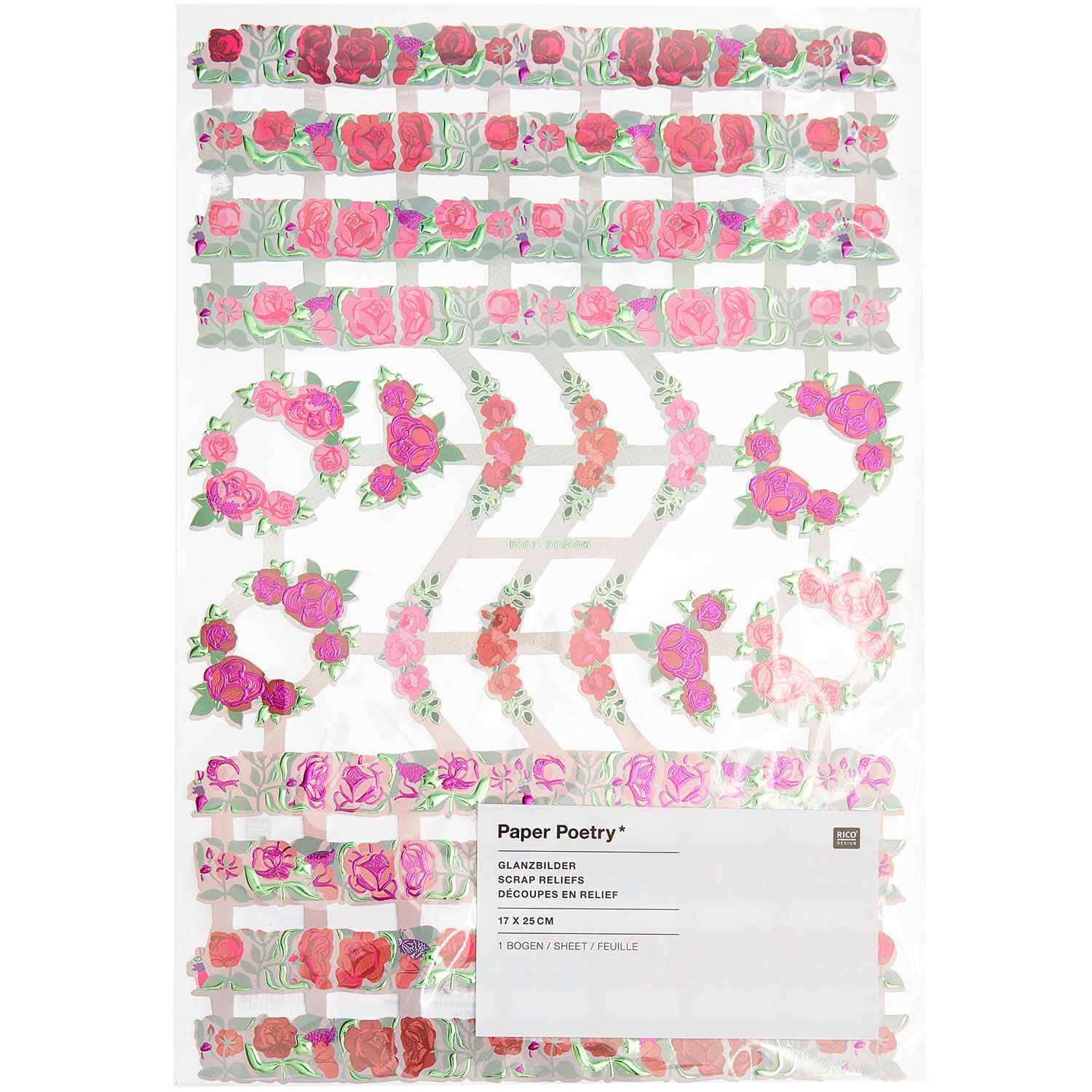 Für eine edle und romantische Note - die Glanzbilder mit Rosen Bordüren! Diese liebevoll gestalteten Motive fangen die zeitlose Schönheit von Rosen ein und eignen sich perfekt, um Bastelprojekte mit einem luxuriösen und emotionalen Touch zu versehen.