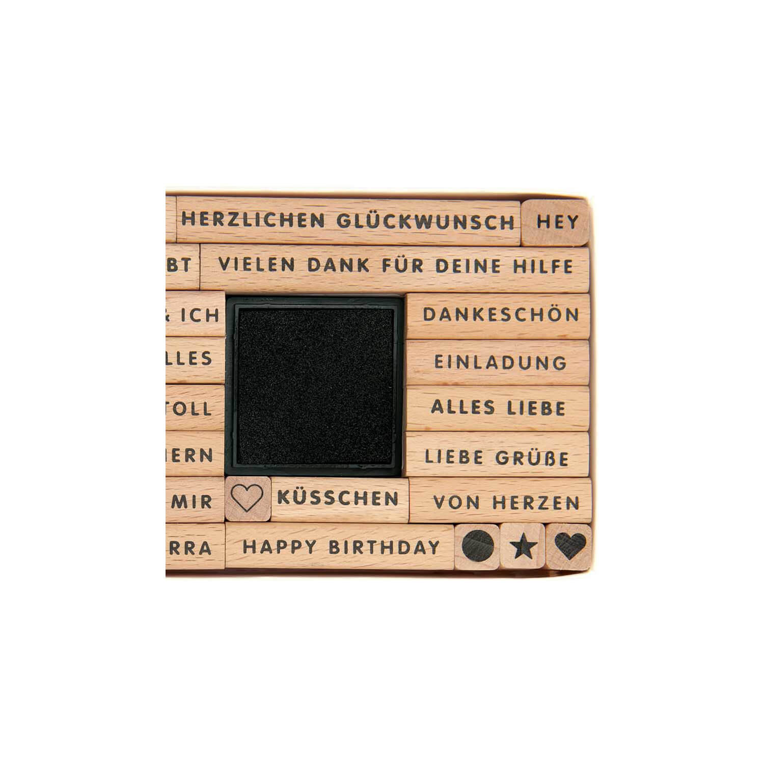 - 32 Holzstempel + 1 Stempelkissen schwarz