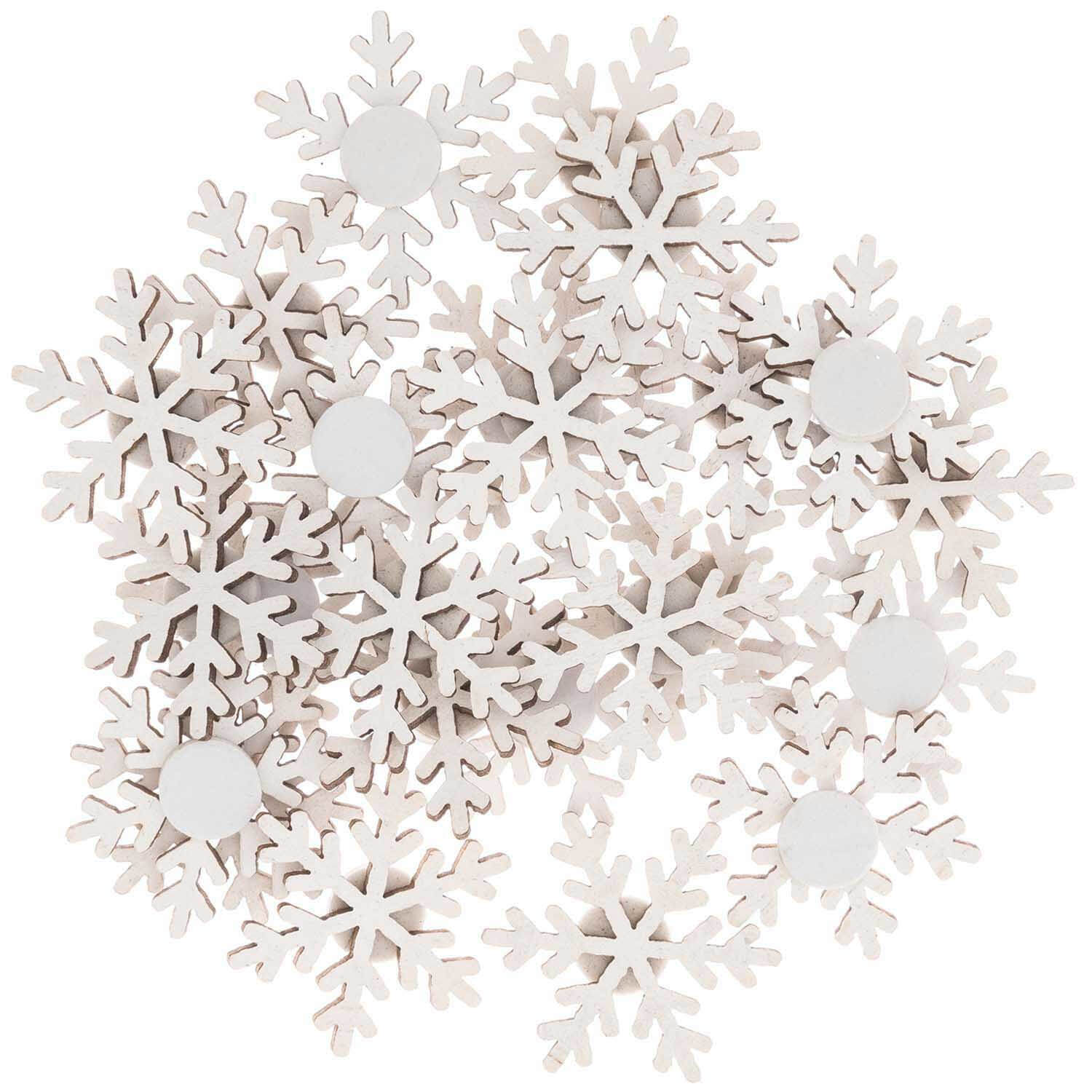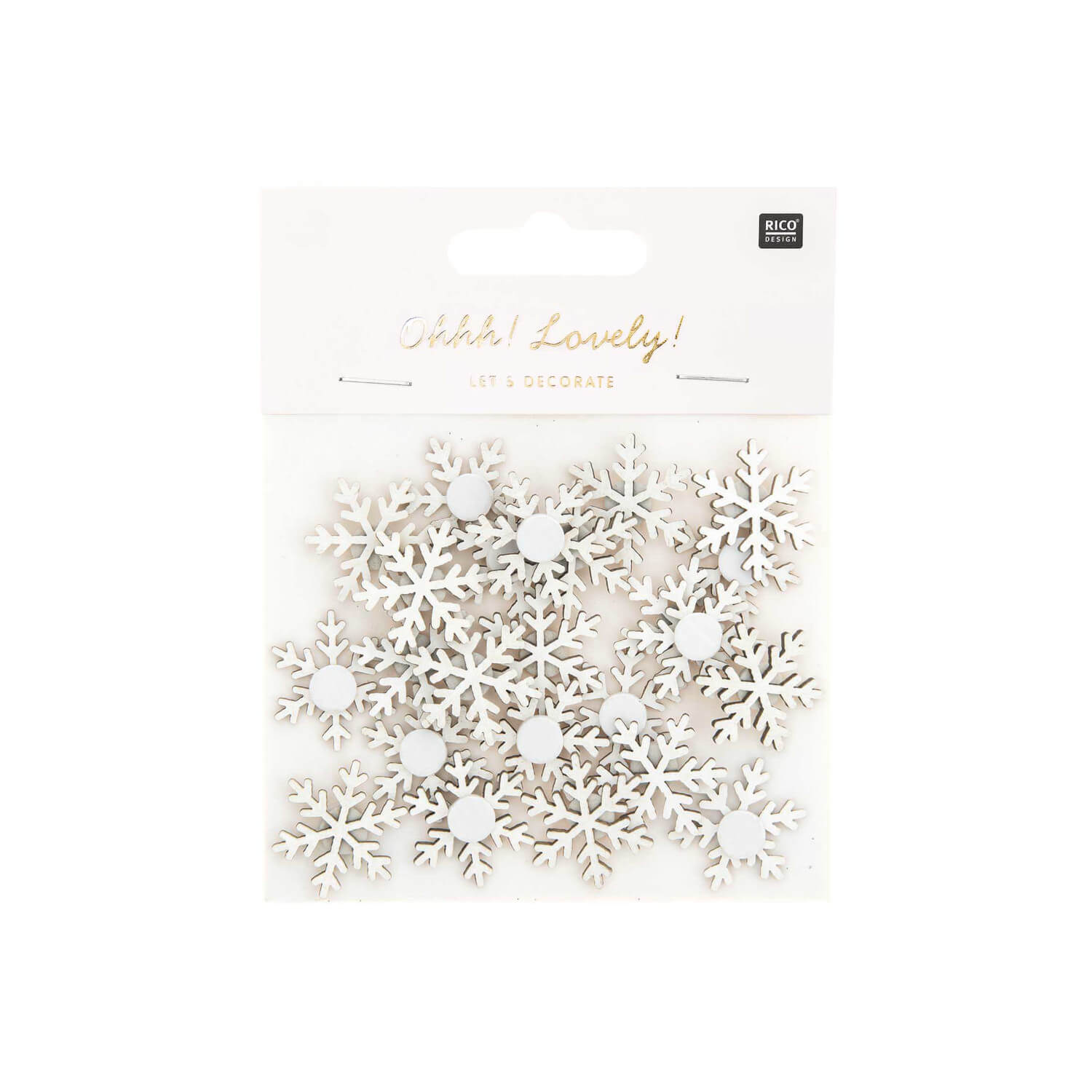 - Packung mit 24 Stück: In jeder Packung befinden sich 24 Holzschneeflocken in einer Größe von 2,2 x 2,5 cm
