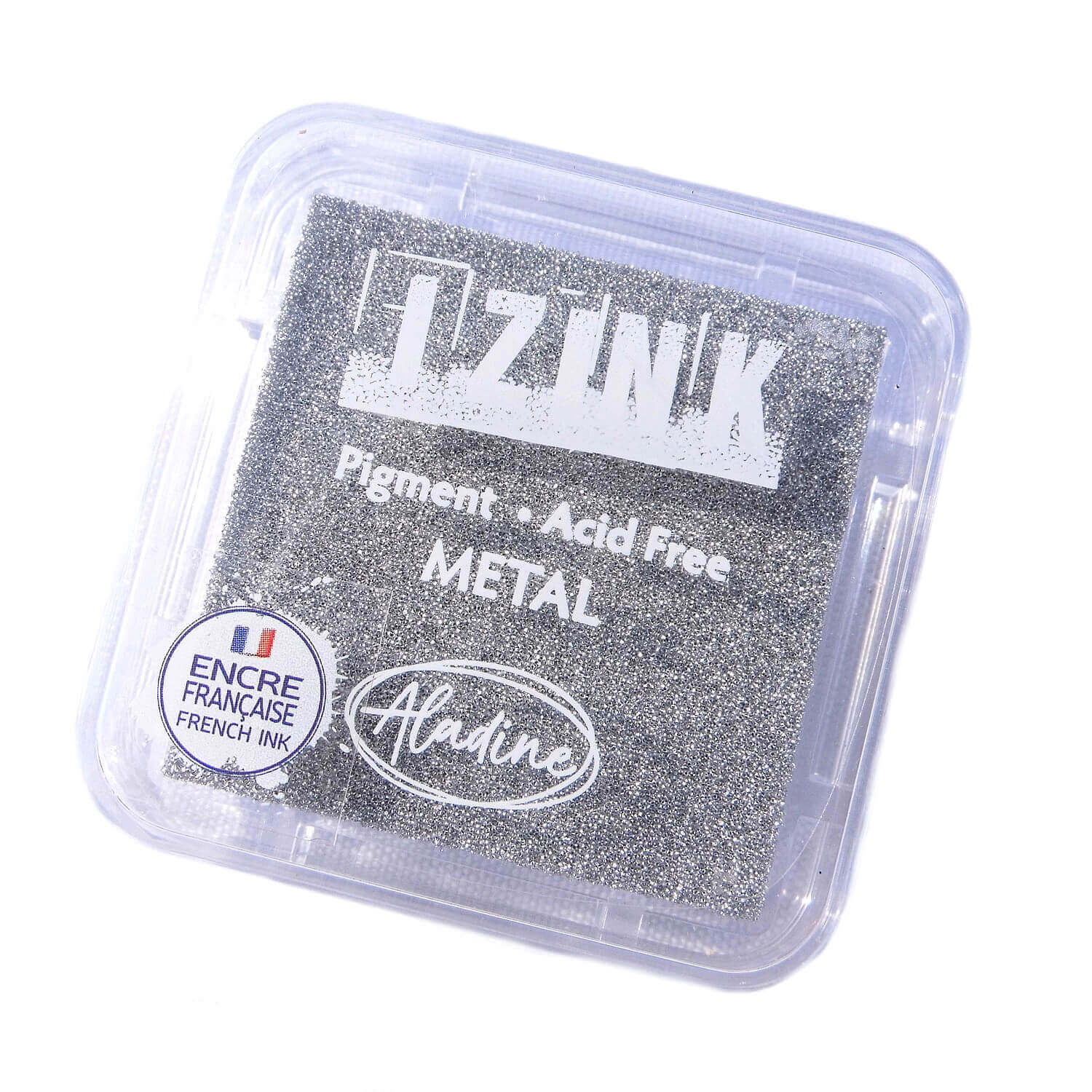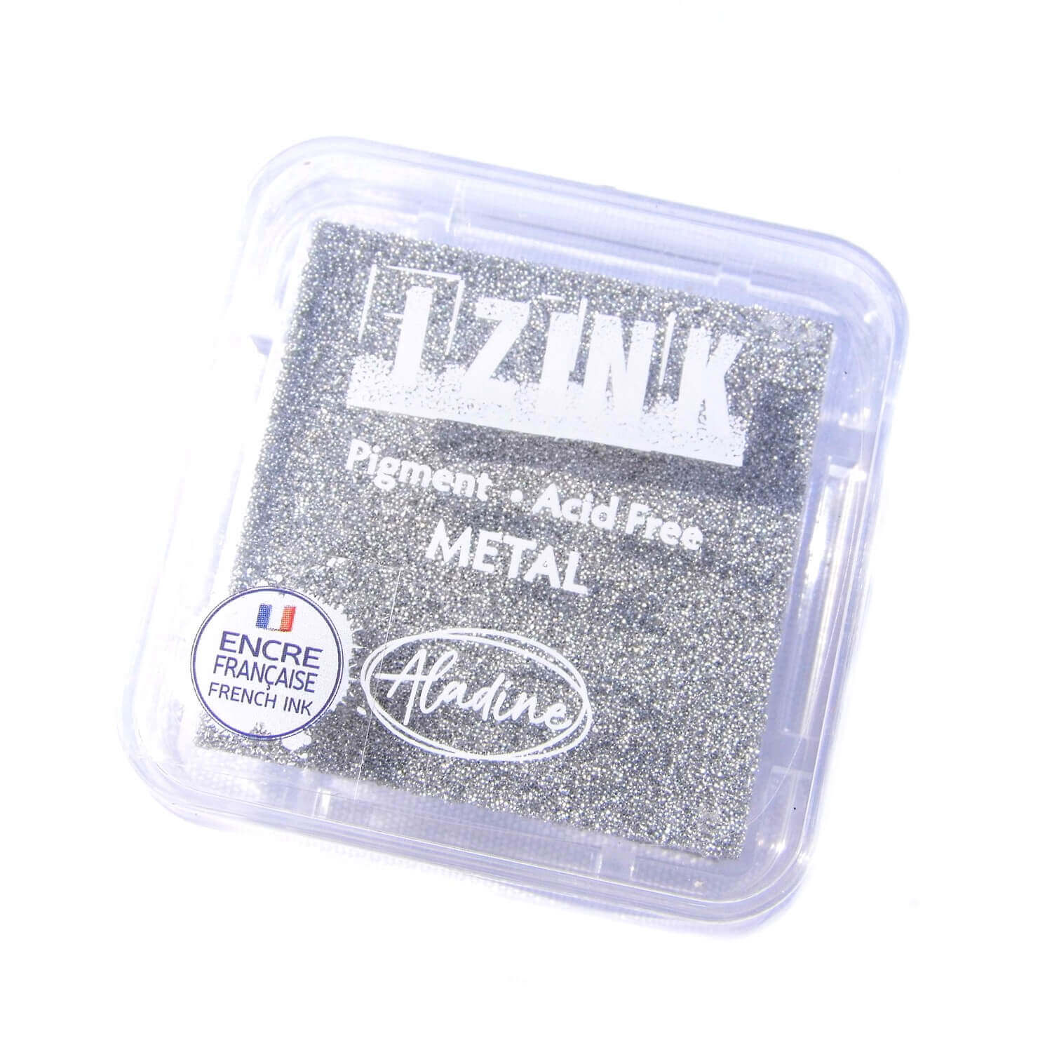 Pigment Stempelkissen IZINK von Aladine in einer silbern glitzernden Metallic-Farbe.