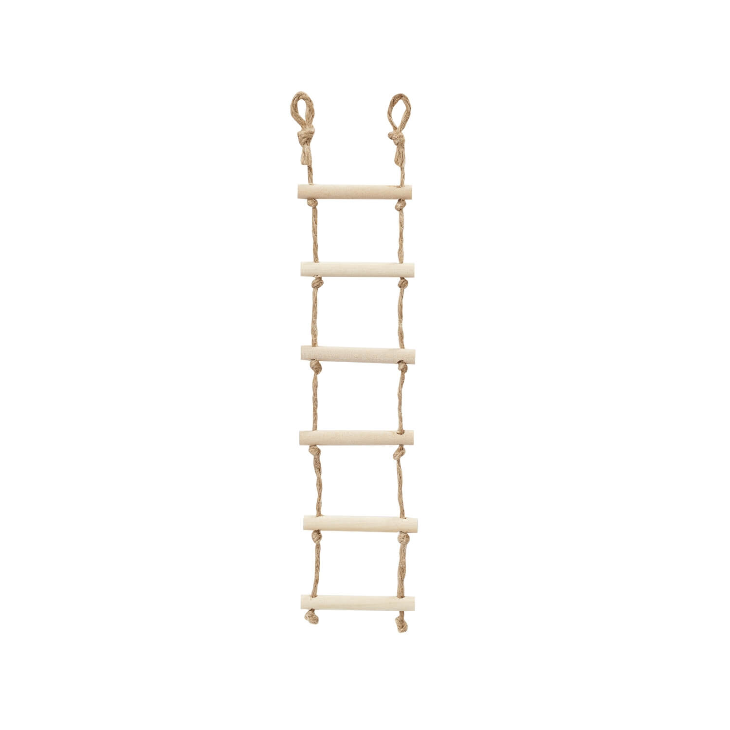 Feenhaus-Dekoration: Hänge die Strickleiter in ein Feenhaus, als Aufstieg zur Schlafplattform oder als Verbindung zu einem Miniatur-Balkon. Ergänzt mit Moos und kleinen Holzstücken wirkt alles besonders märchenhaft.