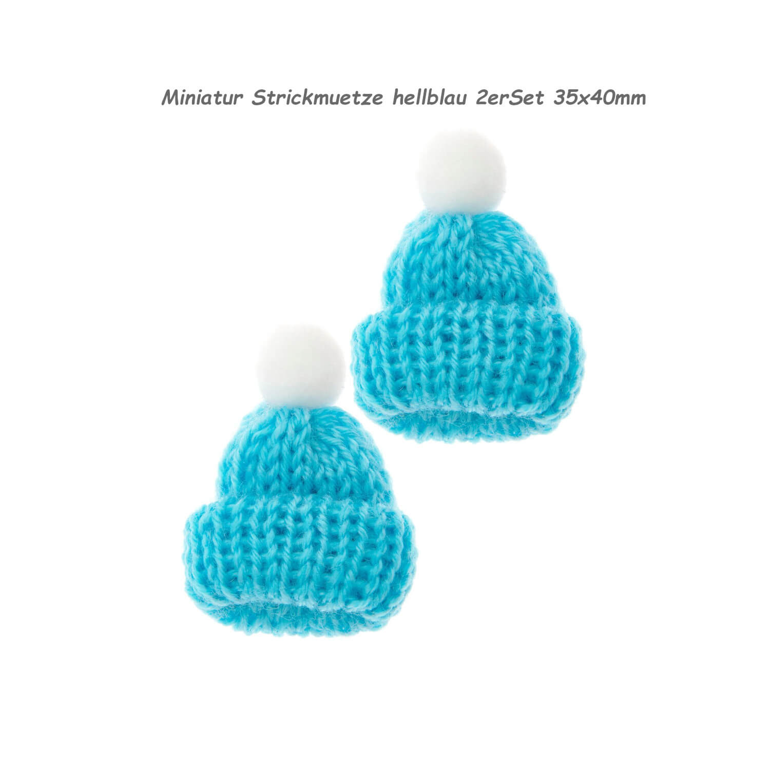Für den winterlichen Charme bei Dekorationen mit dieser niedlichen Miniatur Strickmütze im 2er-Set! Die beiden kleinen Mützen sind aus 100 % Polyester und mit einer weißen Bommel verziert.