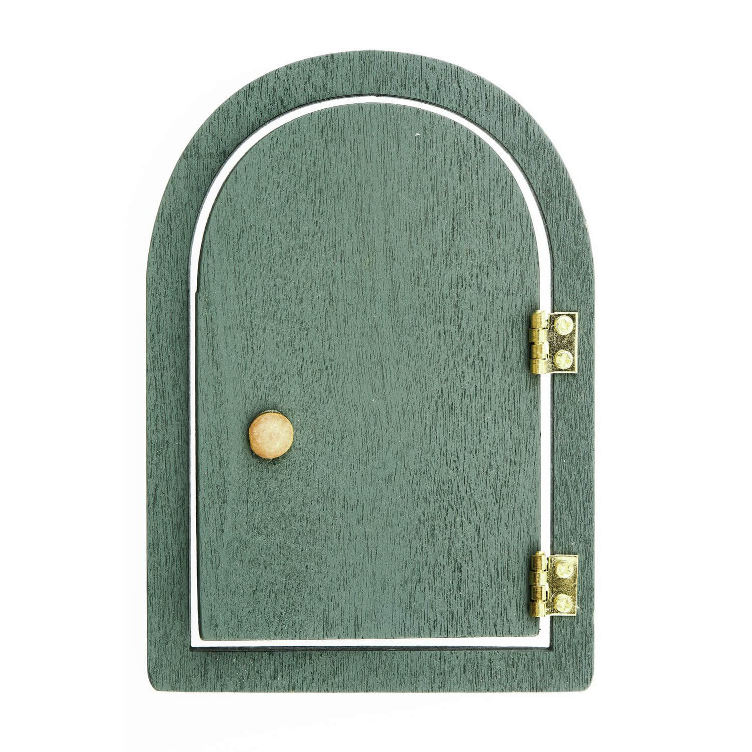 Diese runde Miniatur-Wichteltür in elegantem Dunkelgrün ist zauberhaft, um kreative Dekowelten zum Leben zu erwecken. Mit ihren feinen Metallscharnieren und einem zierlichen Türknauf wirkt sie besonders geheimnisvoll und bringt genau die richtige Portion Märchenzauber in deine Projekte.