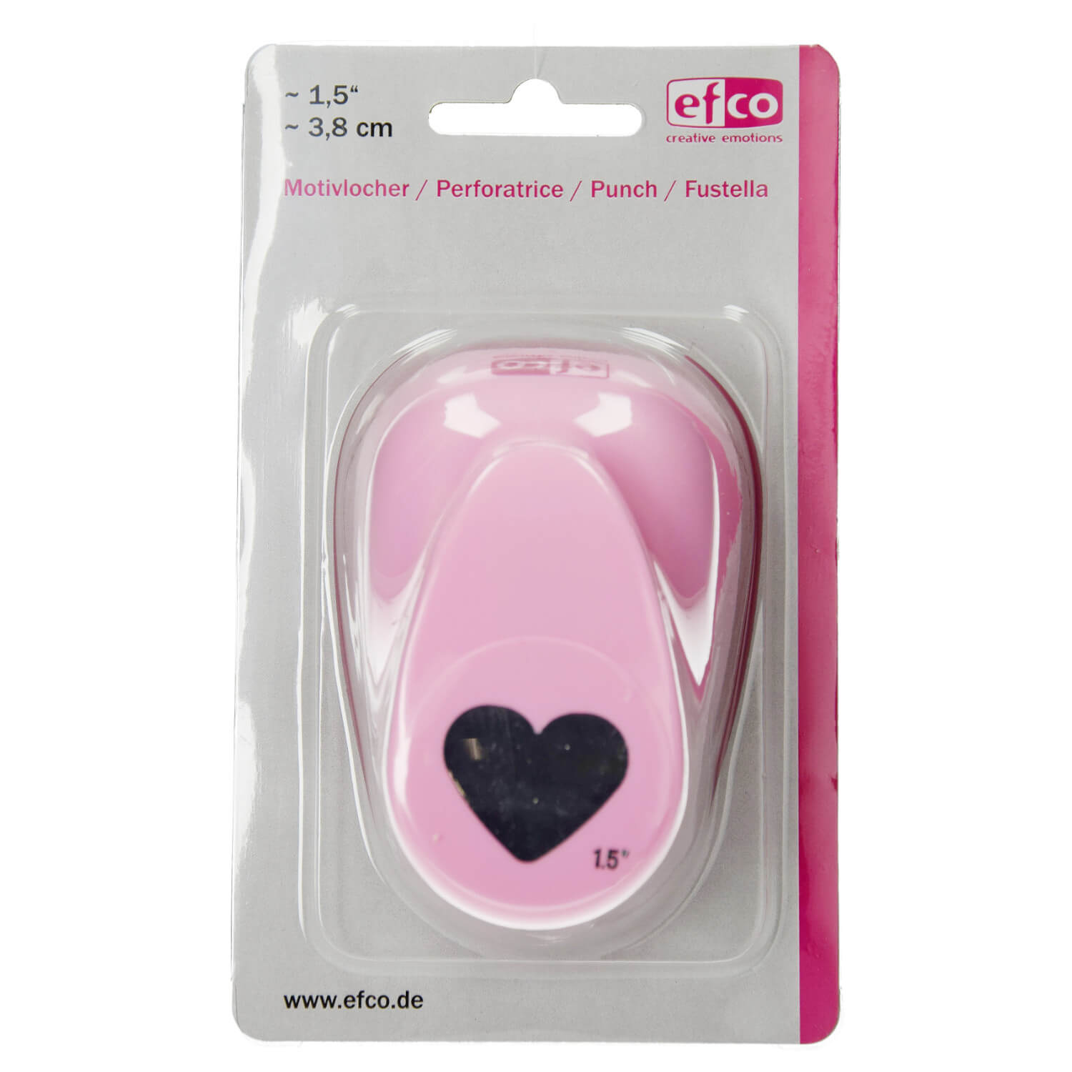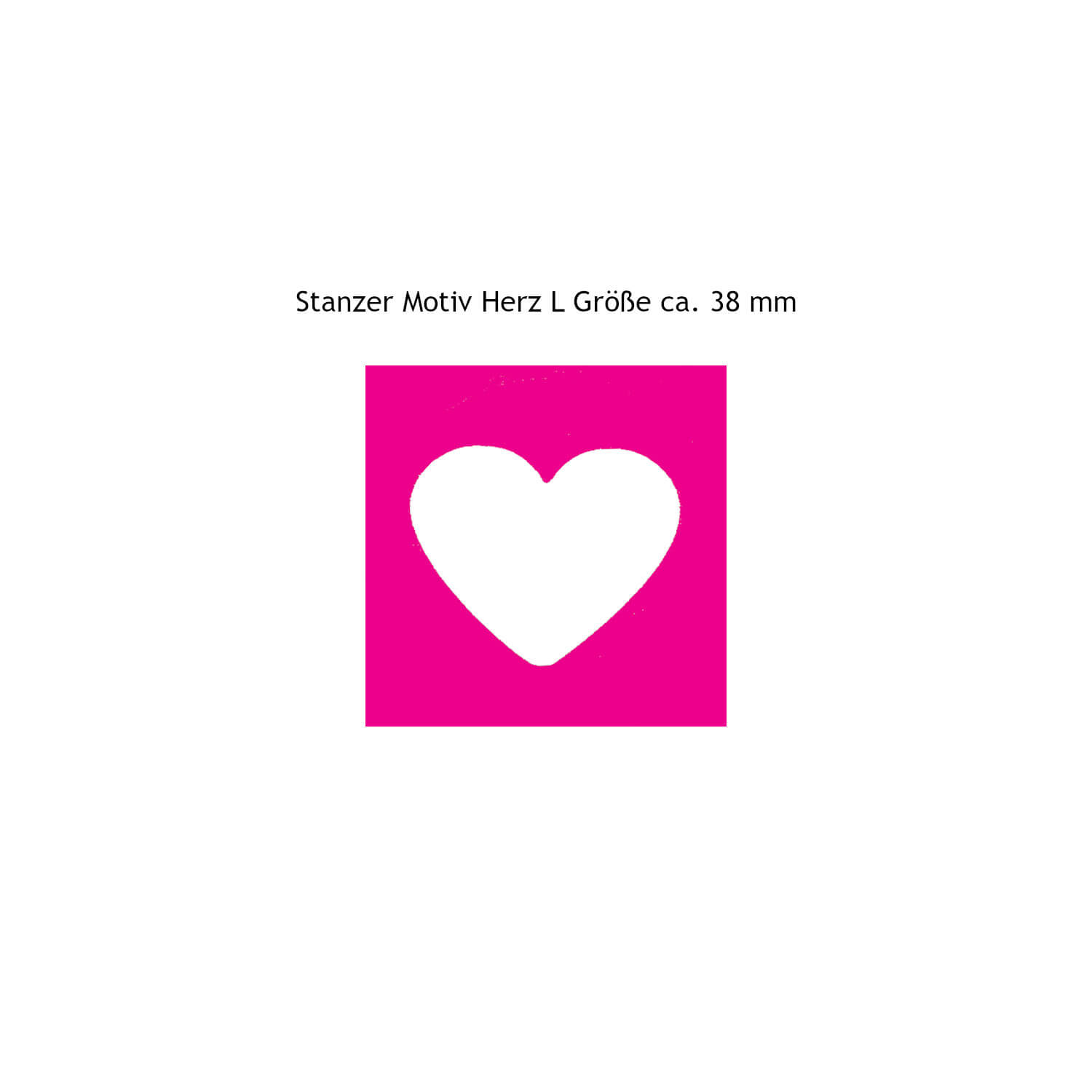 Die ausgestanzten Herzen haben eine Größe von ca. 3,8 cm. Der Motivstanzer ist für Papier mit einer Grammatur zwischen 90 - 215 g/qm geeignet.