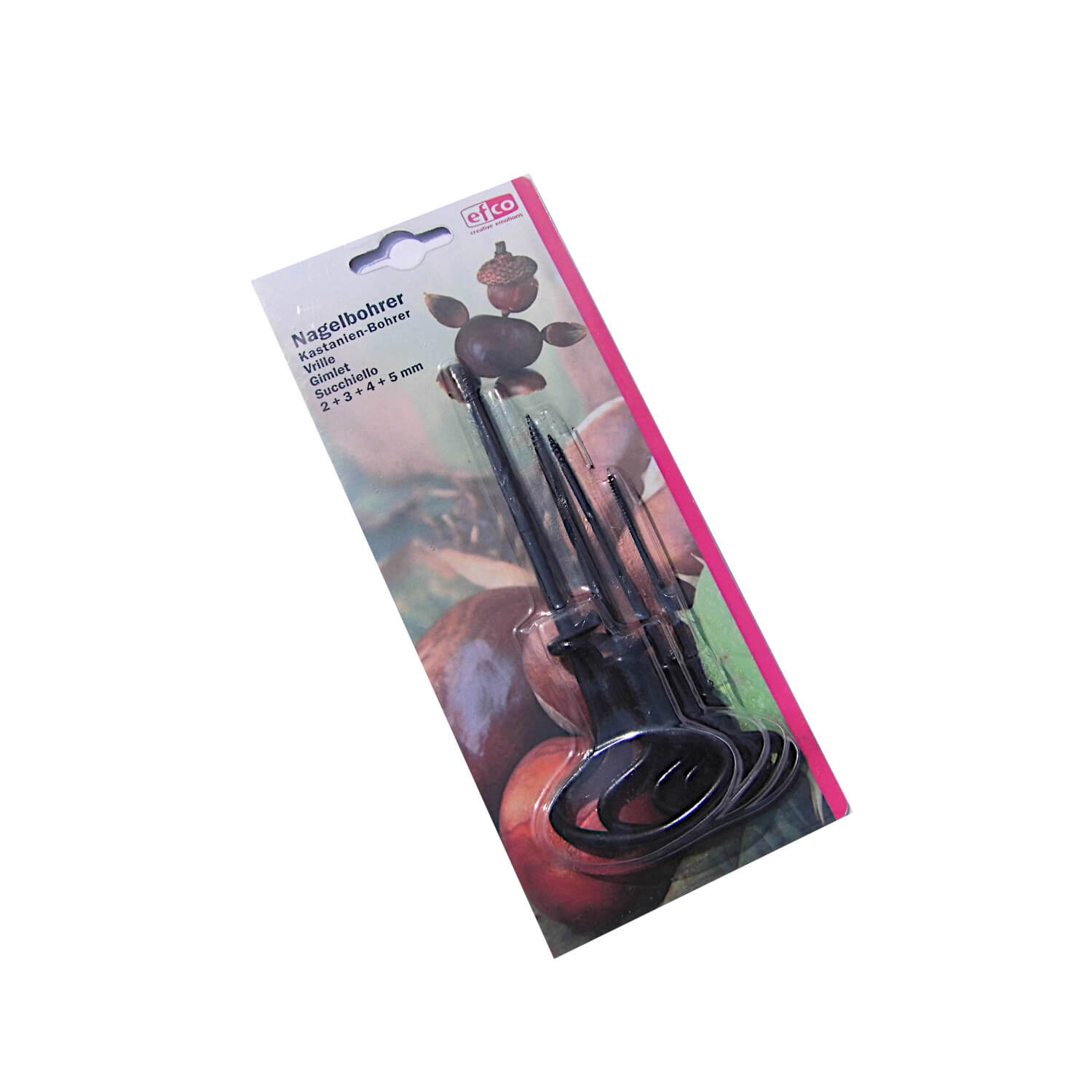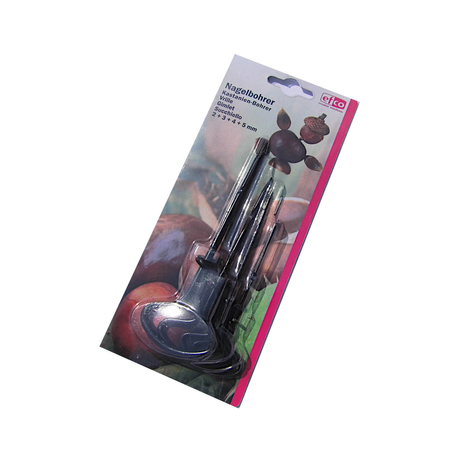 Mit den kleinen Handbohrern lassen sich kleine Löcher selber bohren, ganz ohne Strom. Perfekt sind die Nagelbohrer z. B. für Kastanien oder auch Eicheln.