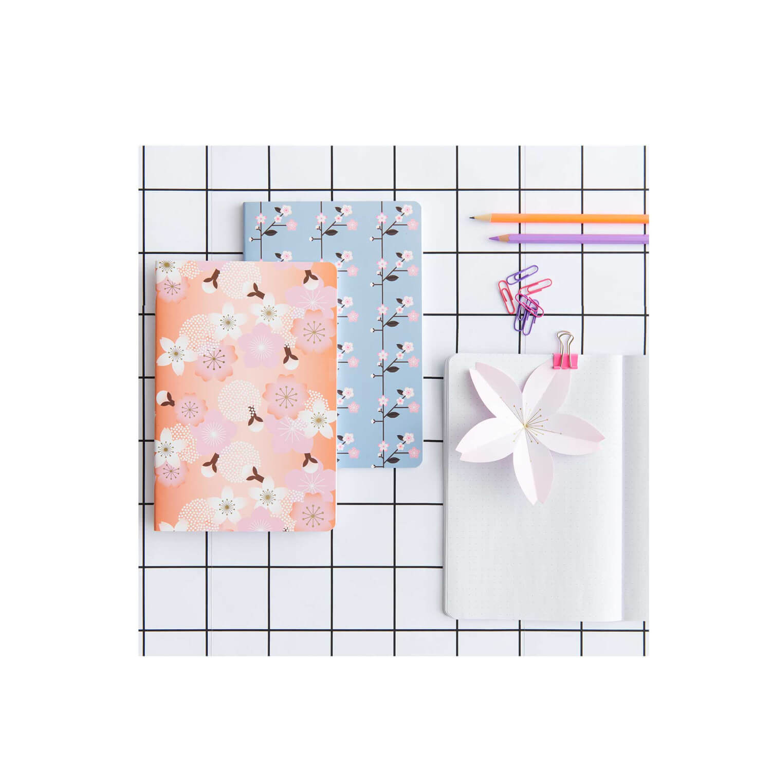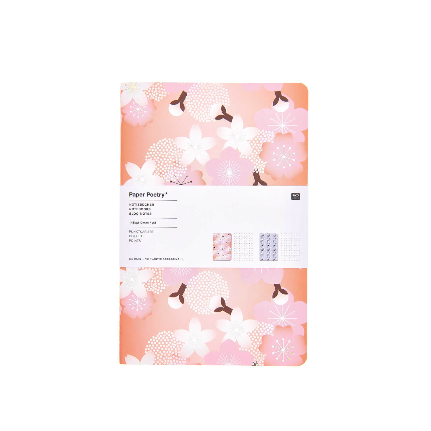 In zwei wunderschönen Designs sind die Umschläge der beiden Notizbücher gestaltet. In zartem Orange und Hellblau mit Kirschblüten-Design sind die Notizbücher so schon ein echter Hingucker. Auf dem Punktraster der einzelnen Seiten der Notizhefte haben viele schriftliche Ideen Platz.