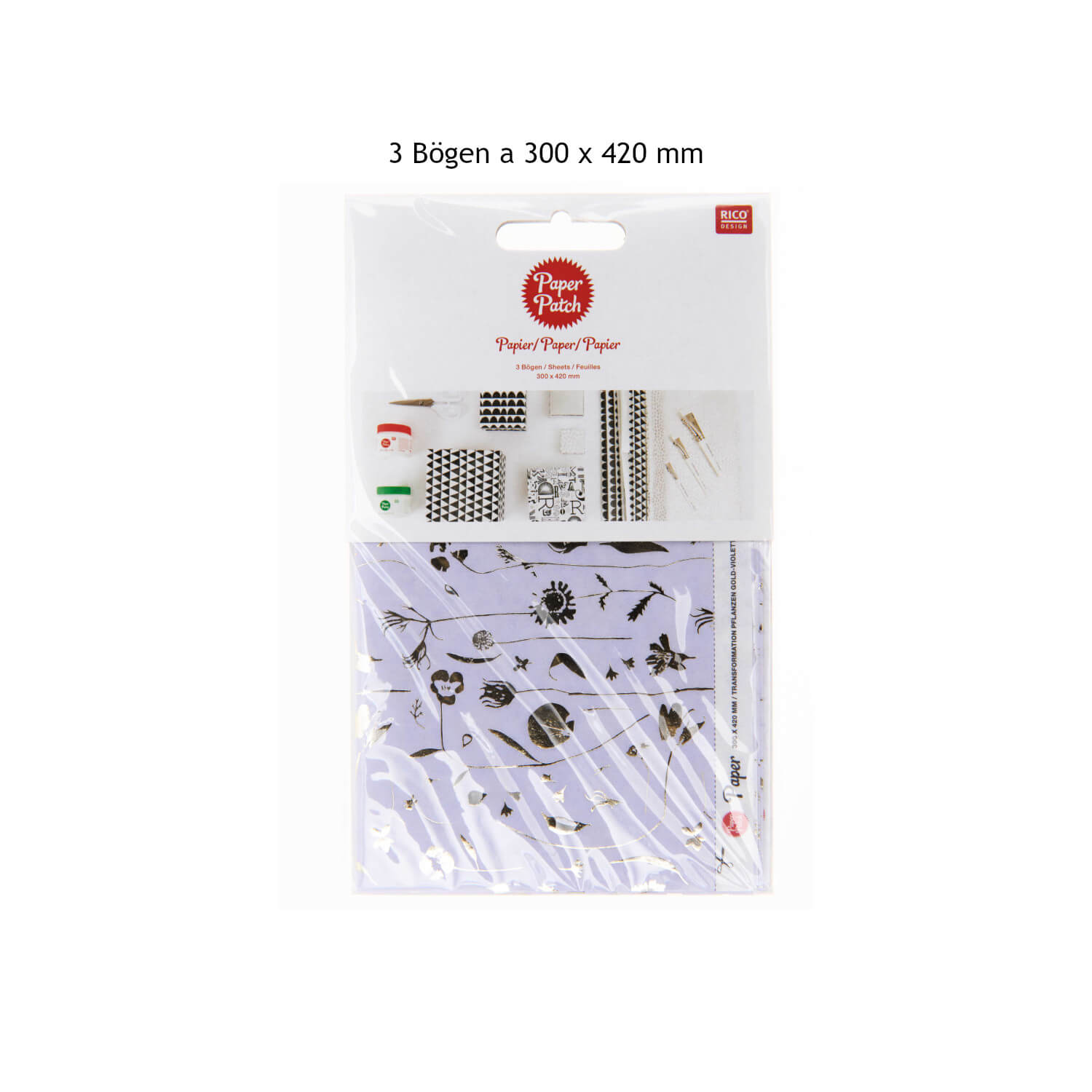 In diesem Set sind 3 Bögen Paper Patch Papiere enthalten. Jeder Bogen hat eine Größe von 300 x 420 mm. Die Papierbögen sind mit dekorativen Pflanzen gestaltet und zum Teil mit Heißfolie in gold veredelt.