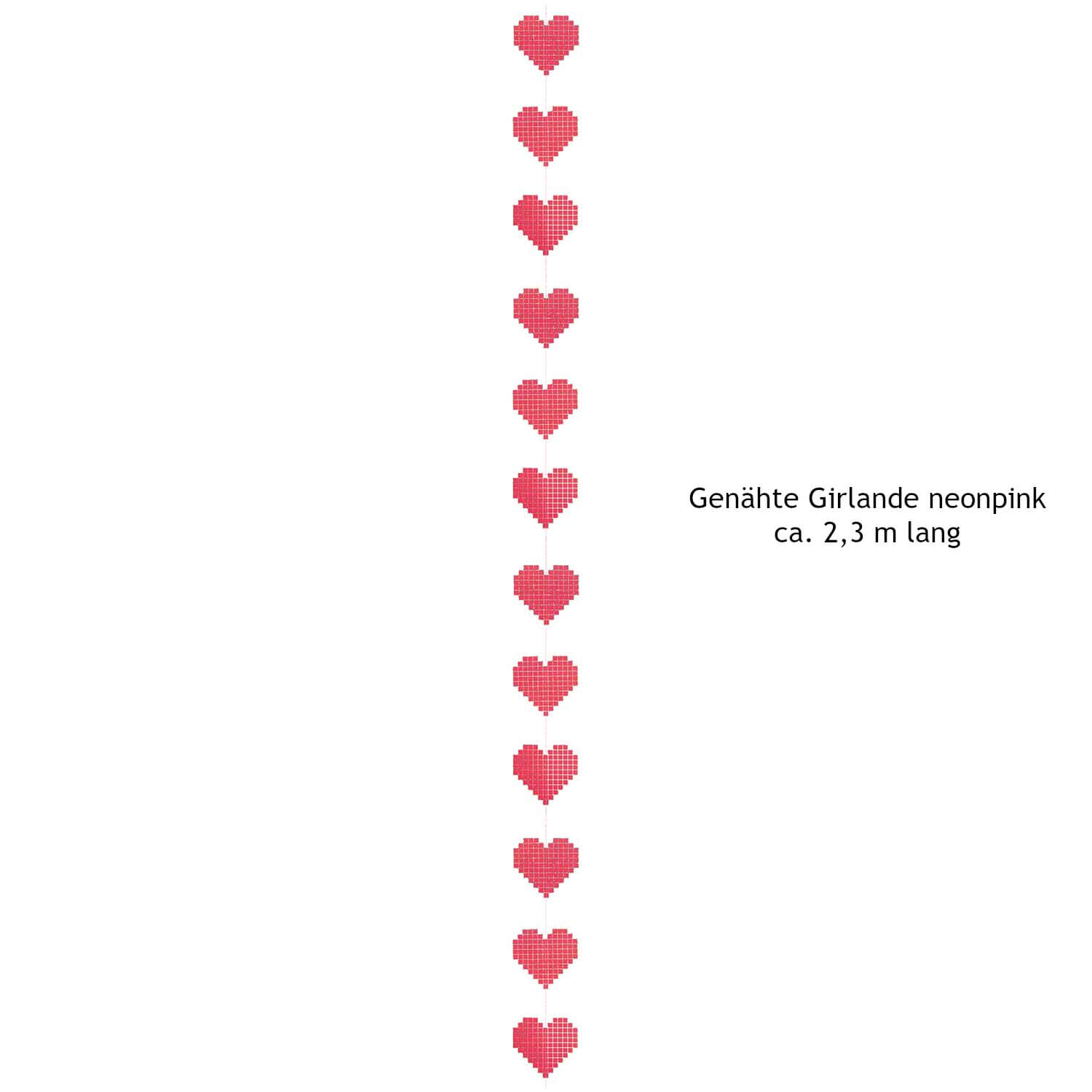 Mit einer Länge von 2,3 Metern ist die genähte Girlande Herzen das ultimative Must-Have für jede Feier. Ihr einzigartiges Design, das aus Hot Foil und Neon-Elementen besteht, verleiht der Partydekoration einen unwiderstehlichen Glanz.