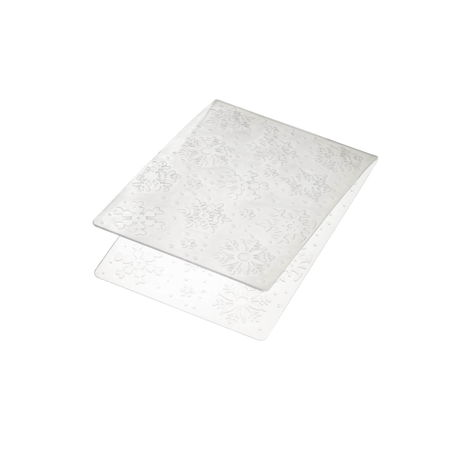 Die Kunststoffschablone ist ca. 106 x 150 mm groß. Mit der Schablone können verschiedene Schneeflocken z. B. auf Papier geprägt werden. Dies lässt sich mit einem Prägestift leicht machen. Die Prägeschablonen sind aber auch für die gängigen Papierprägegeräte geeignet.