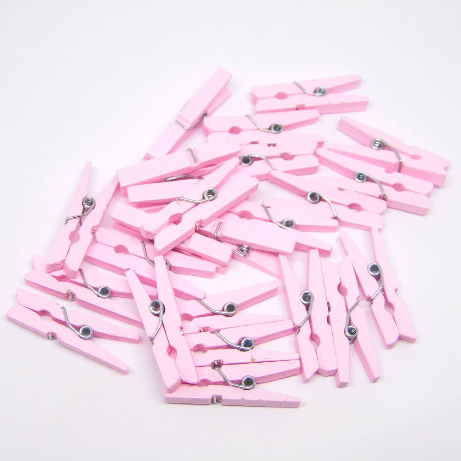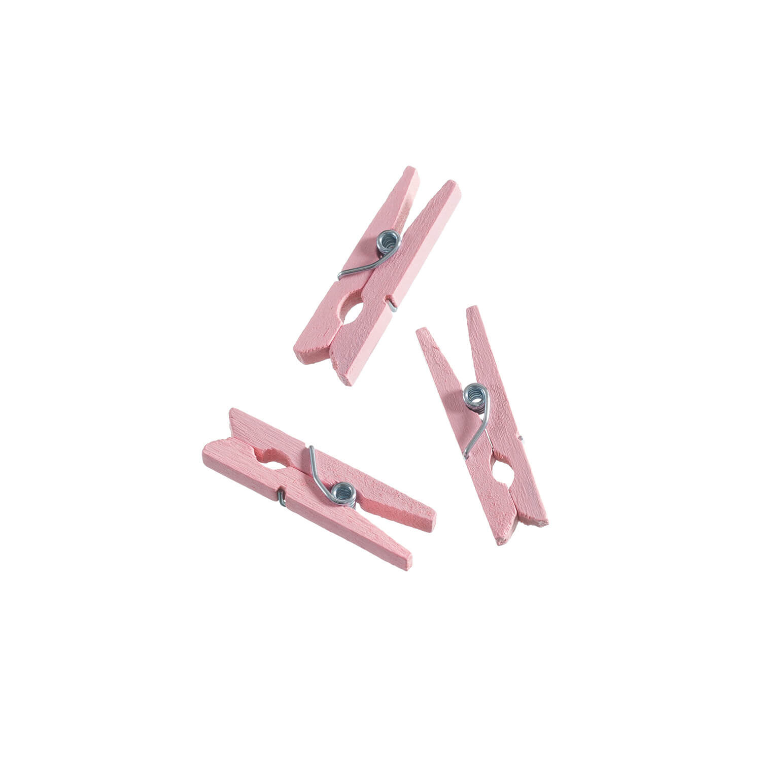 Die Holzklammern sind ca. 30 mm lang. Die rosa-farbenen Klammern sind ideal zum Verschließen von Tütchen oder Befestigen von kleinen Kärtchen oder Geschenkanhängern.