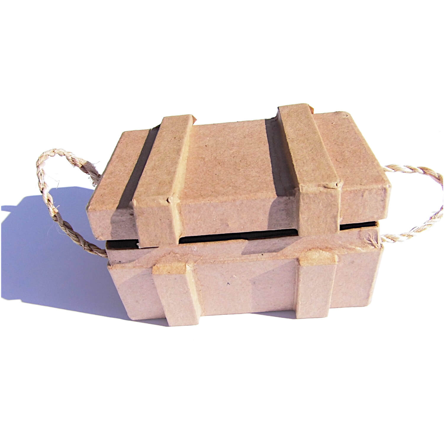 Die kleine Truhe hat 2 Griffe, fast wie eine echte Schatztruhe. Die Papp-Truhe lässt wunderbar bemalen und gestalten. Perfekt für die Schatzsuche auf einem Kindergeburtstag.
