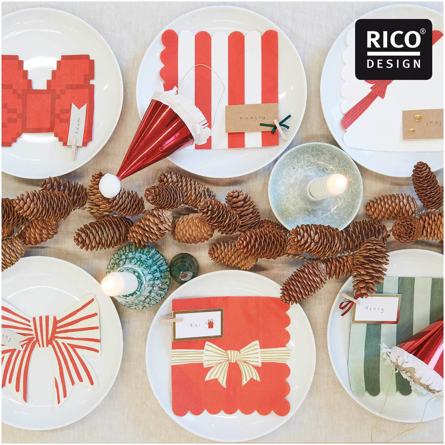 Diese Servietten zeichnen sich durch ein raffiniertes Streifenmuster aus, das festliche Akzente setzt, ohne aufdringlich zu wirken. Die charmante Wellenkante rundet das Design ab und sorgt für eine verspielte Note, die wunderbar in die weihnachtliche Atmosphäre passt.