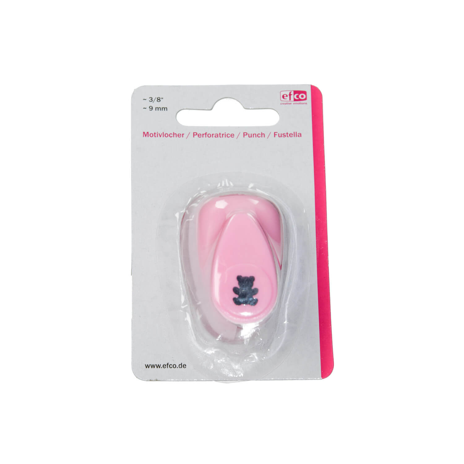 Mit diesem Stanzer können kleine Bären ausgestanzt werden. Man erhält so tolle Stanzteile für die Gestaltung von Karten zur Geburt oder auch einem Kindergeburtstag. Selbst Konfetti für die Tischdeko kann mit dem Motivstanzer selbst hergestellt werden.
