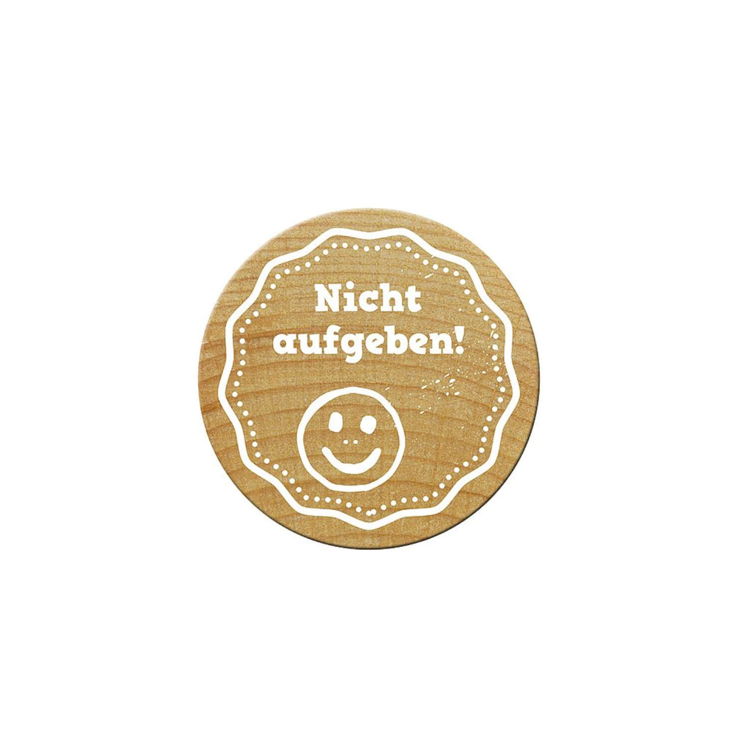 Runder Holzstempel mit Schriftzug Nicht aufgeben