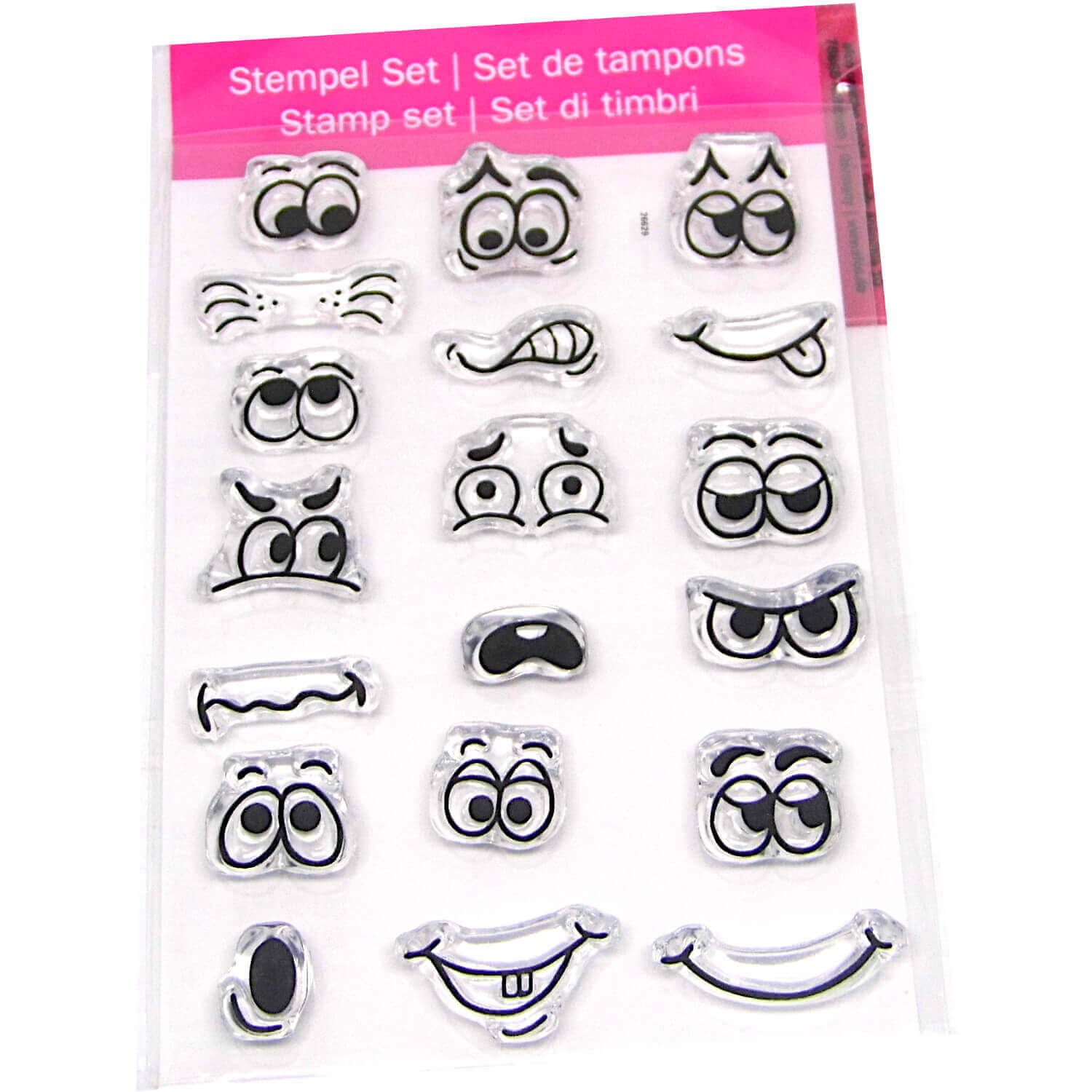 Entdecke die kreative Vielfalt der Clearstamps Gesichter. Mit 19 hochwertigen Stempeln können verschiedene Gesichtszüge kombiniert und so individuelle Charaktere erschaffen werden. Ob fröhlich, traurig, überrascht oder verträumt - fast endlose Möglichkeiten. Jeder Stempel enthält einen verschiedenen Gesichtszug, wie Augen, Nase, Mund und vieles mehr. Mit diesen Stempeln lassen sich die unterschiedlichsten Gesichter auf Papier zaubern.