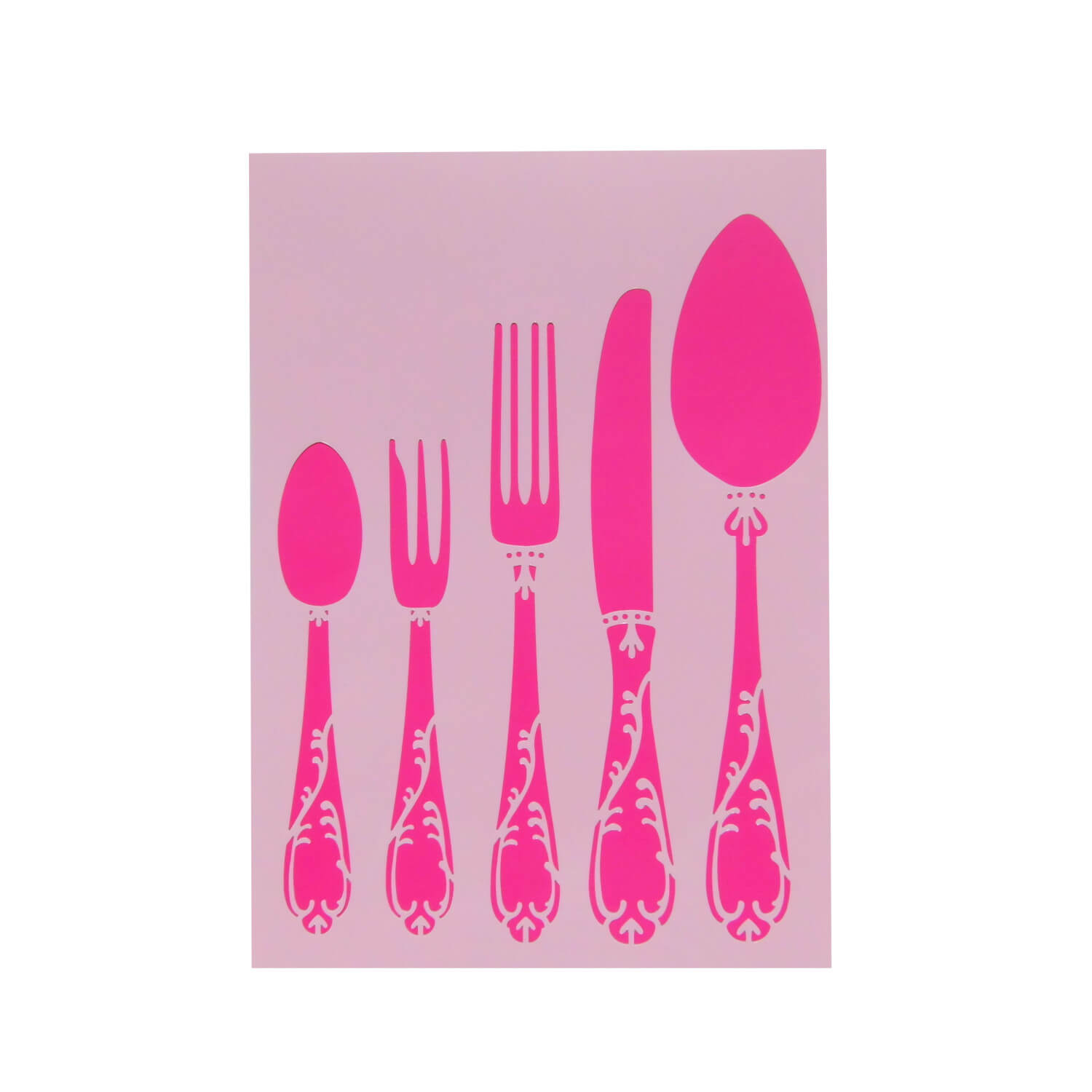 Mit dieser Kunststoff-Schablone kannst Du z. B. Stoffservietten ganz toll dekorieren. Wie zauberhaft sieht es denn wohl aus, wenn das Besteck auf so einer vorbereiteten Serviette auf dem Tisch liegt?