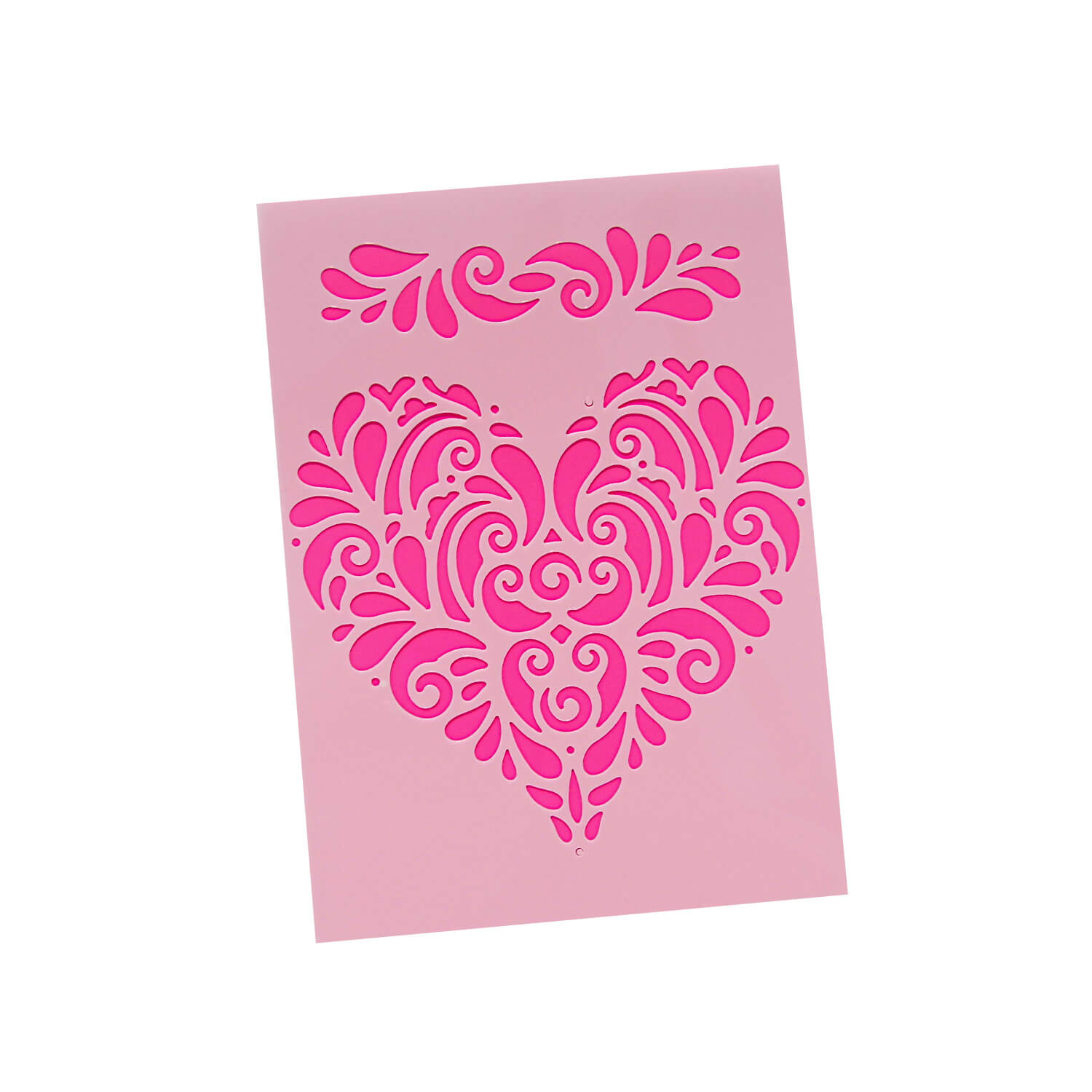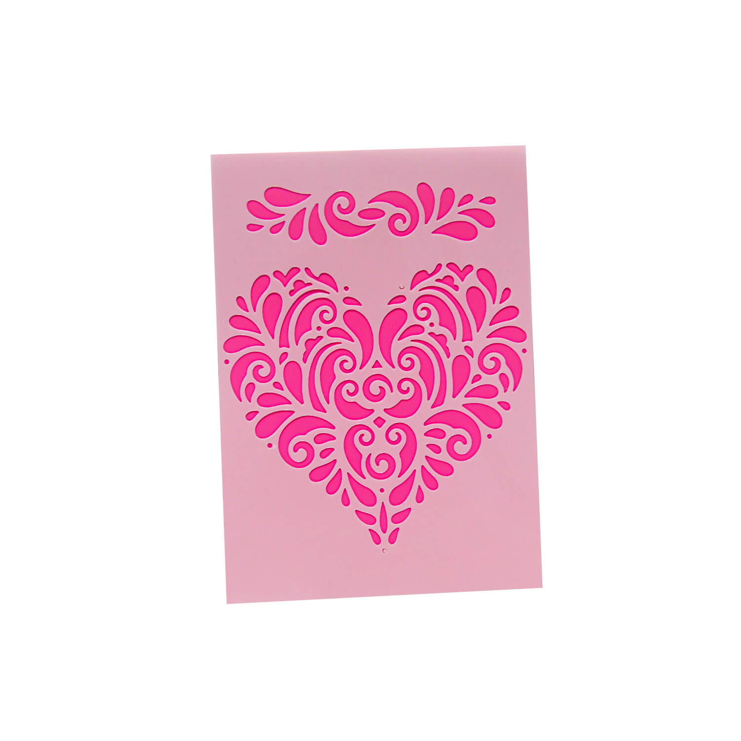 Ein romantisches Herz lässt sich mit dieser Schablone auf die verschiedensten Untergründe auftragen. Nutze es z. B. für Textilservietten auf einer Hochzeit. Gestalte diese im farblichen Konzept des Hochzeitsfestes.