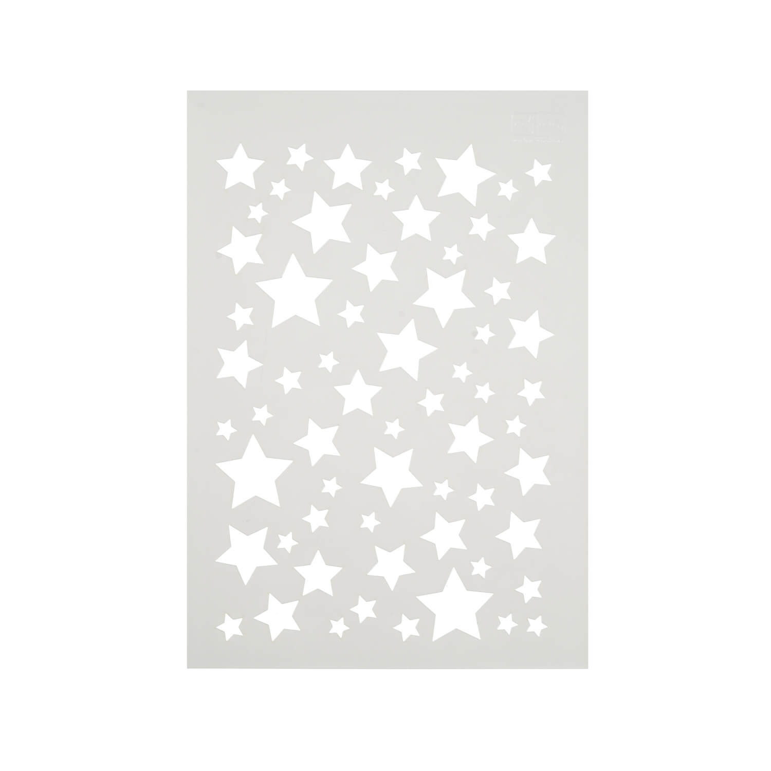 Mit dieser Kunststoff-Schablone lässt sich Geschenkpapier veredeln, Textilien bemalen oder Wände verzieren. Wie wäre es denn mit einem Sternenhimmel im Kinderzimmer?
