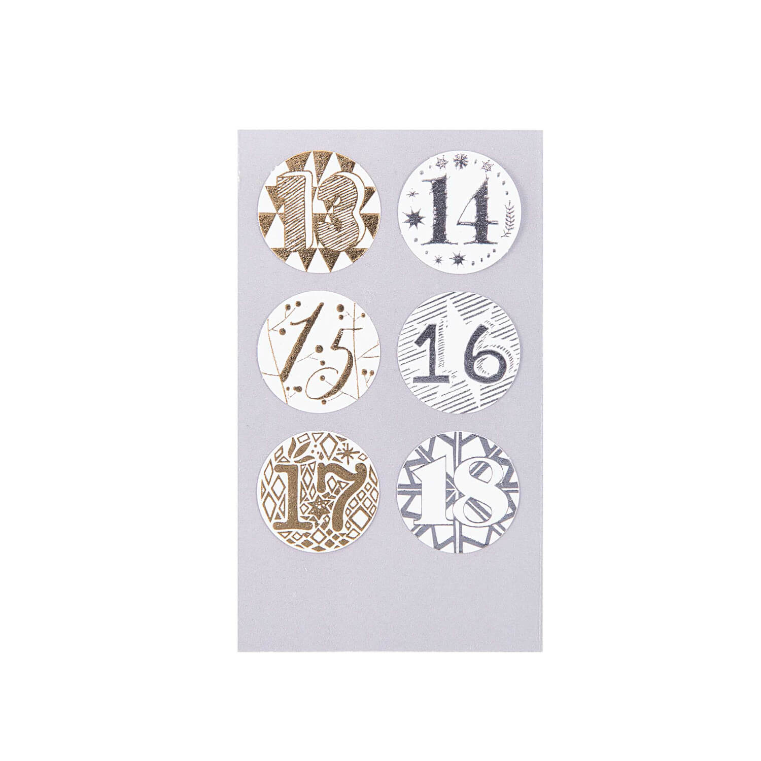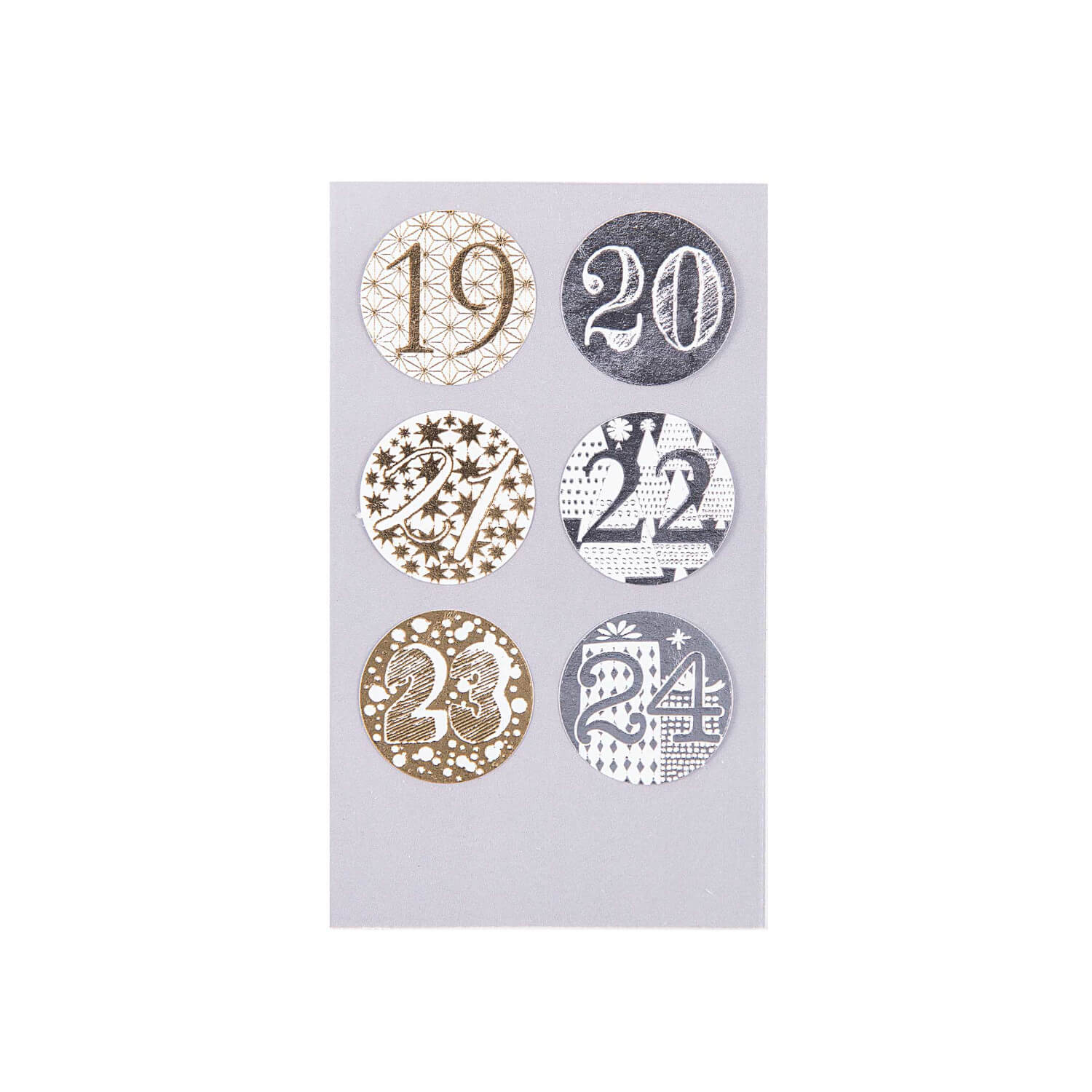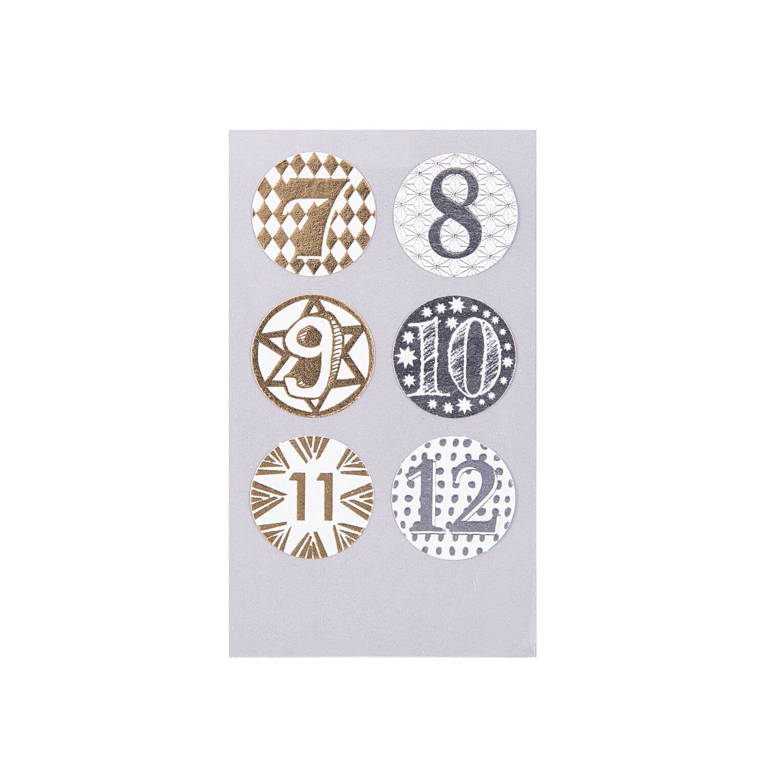 Die Klebezahlen in glitzernden gold- und silberfarben sind perfekt für einen Tüten-Adventskalender. Mit den Stickern lassen sich die Papiertüten direkt verschließen. Die runden Zahlensticker sind ca. 28 mm im Durchmesser.