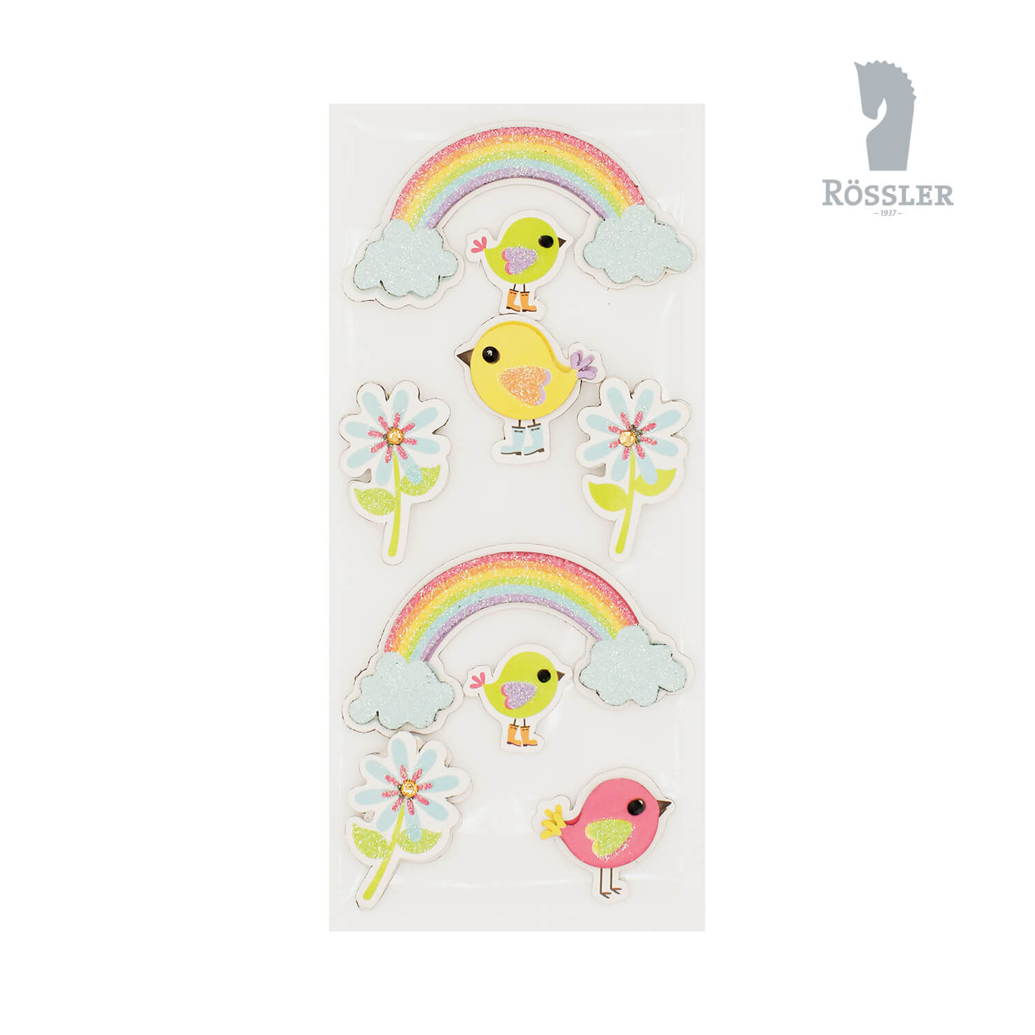 Die Sticker „Garden“ bringen frischen Wind in jedes Bastelprojekt und zaubern mit ihren liebevoll gestalteten Motiven ein fröhliches, verspieltes Flair auf Karten, Alben, Verpackungen und vieles mehr. Dieses Set enthält insgesamt 9 Sticker mit Motiven aus der Natur: zarte Regenbögen mit süßen Wölkchen, kleine bunte Vögel und stilisierte Blumen. Jedes Element ist detailreich gearbeitet und begeistert durch eine hochwertige 3D-Optik, die den Motiven eine besondere Tiefe und Lebendigkeit verleiht.