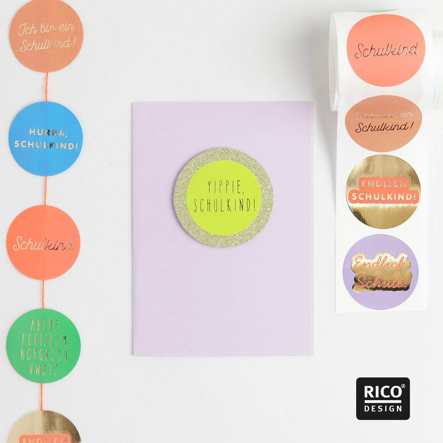 Sticker Schulkind – 100 bunte Sticker zur Einschulung auf Rolle – Ø 5 cm