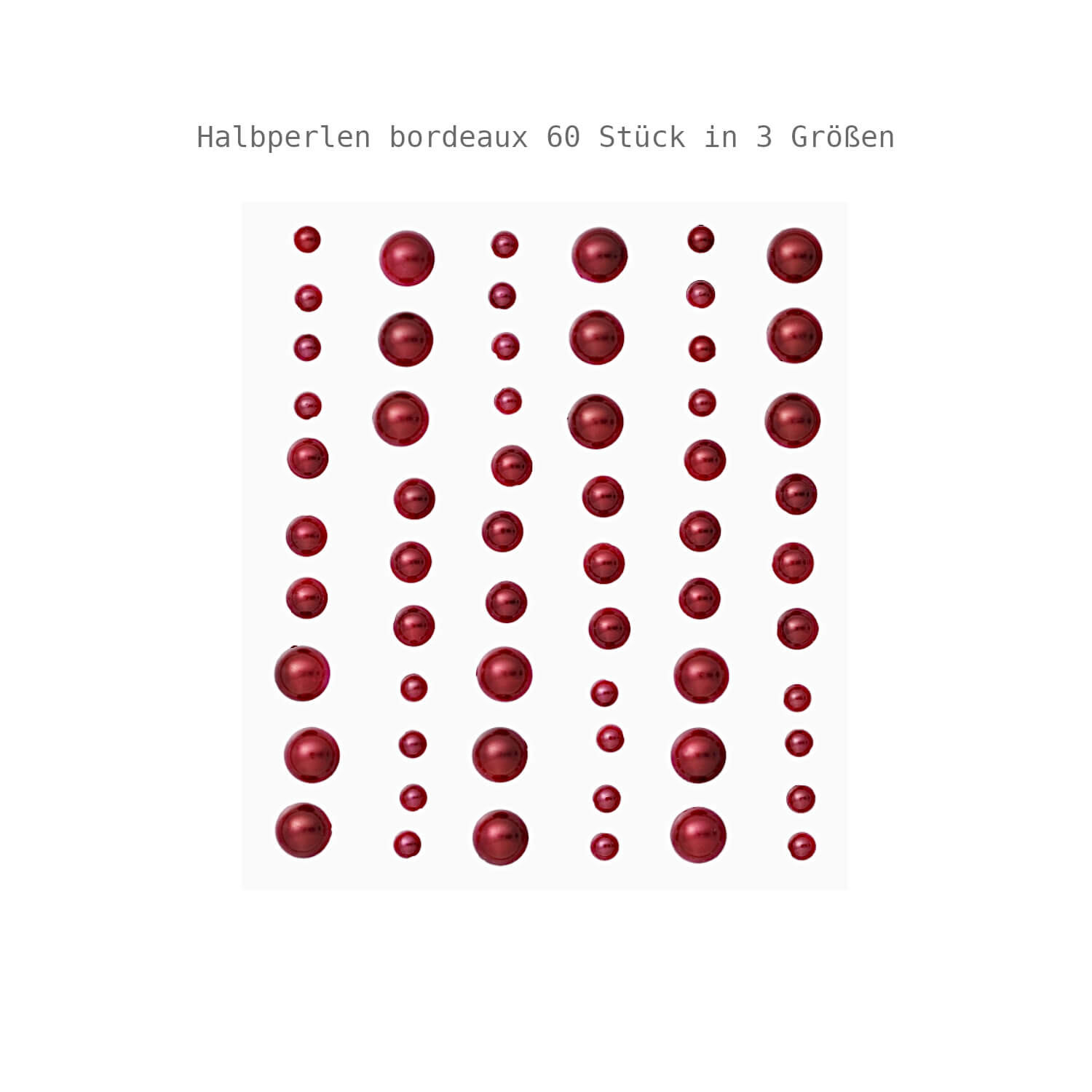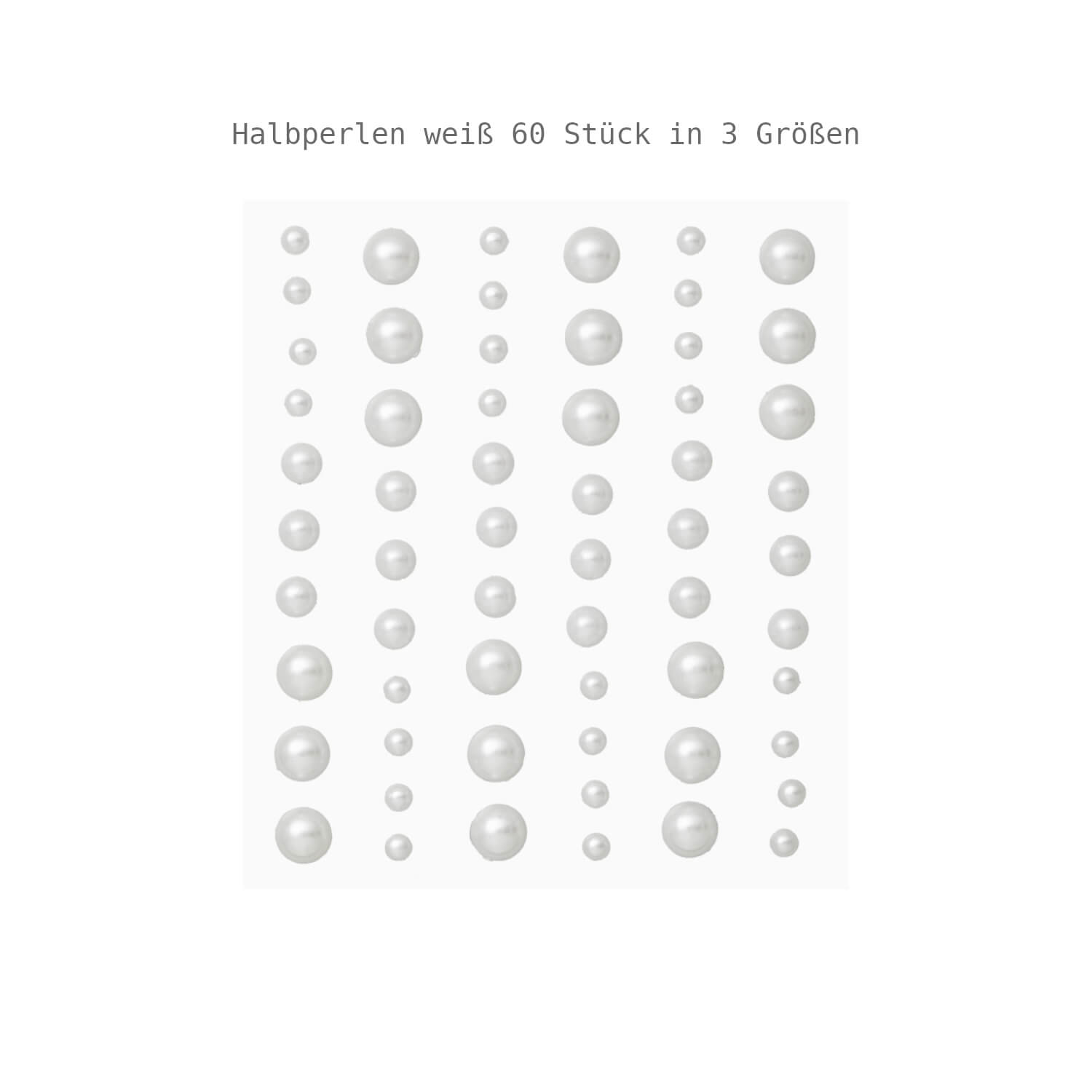 Besonders praktisch: Durch die unterschiedlichen Größen wirken Motive lebendig und harmonisch zugleich. So lassen sich Blumen, Schriftzüge, Rahmen oder kleine Illustrationen wunderbar betonen. Die Halbperlen haften zuverlässig auf Papier, Karton und vielen weiteren glatten Untergründen - ideal für kreative Projekte mit wenig Aufwand und großer Wirkung.