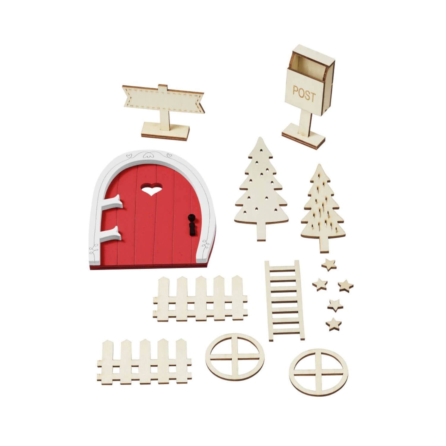 Dieses 11-teilige Wichtelset ist der perfekte Start in die magische Welt der Wichtel. Mit seiner rot bemalten Holztür und weißen Randverzierungen sowie dem kleinen Herzfenster verbreitet es sofort winterlichen Zauber. Dazu kommen viele liebevolle Accessoires, mit denen sich im Handumdrehen eine eigene kleine Wichtelszene gestalten lässt - von der gemütlichen Häuserecke bis zum winterlichen Vorgarten. Das Set enthält alles, was dein Wichtel zum Einziehen braucht: zwei Mini-Tannen aus Holz, einen kleinen Briefkasten, ein Türschild, zwei Mini-Holzzäune, zwei runde Fenster und zauberhafte Holzsterne zum Streuen oder Dekorieren.